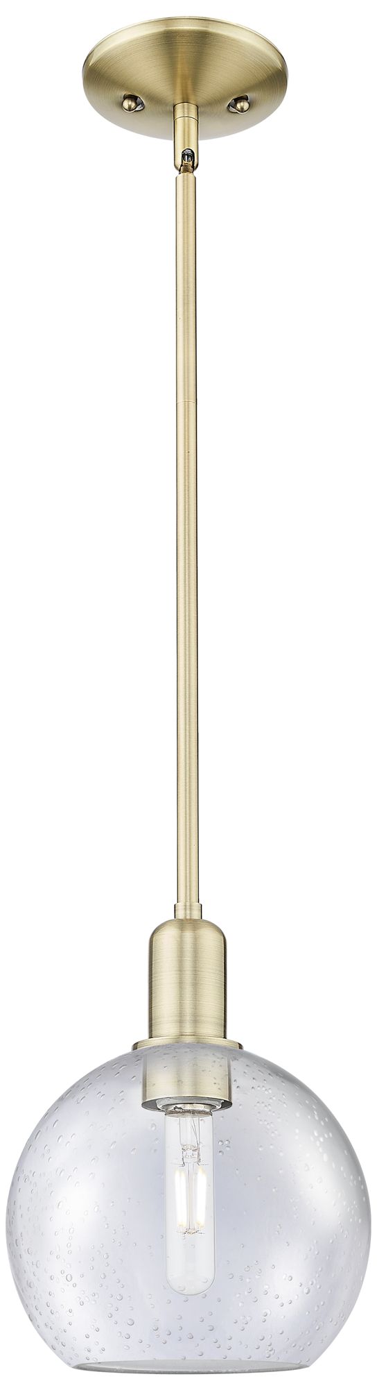 Arcadia Athens 8"W Brass Stem Hung Mini Pendant With Seedy Shade