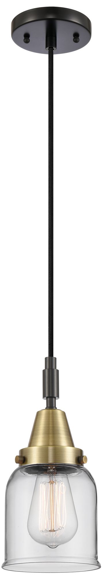 Downtown Caden Bell 5"W Cord Black Brass Mini Pendant w/ Clear Shade