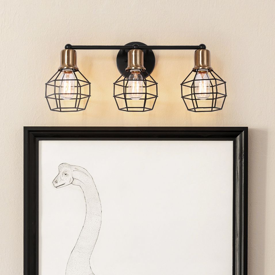 3-lights 21.3"W Cage Black and Imitation Electroplated Copper Wall Lamp