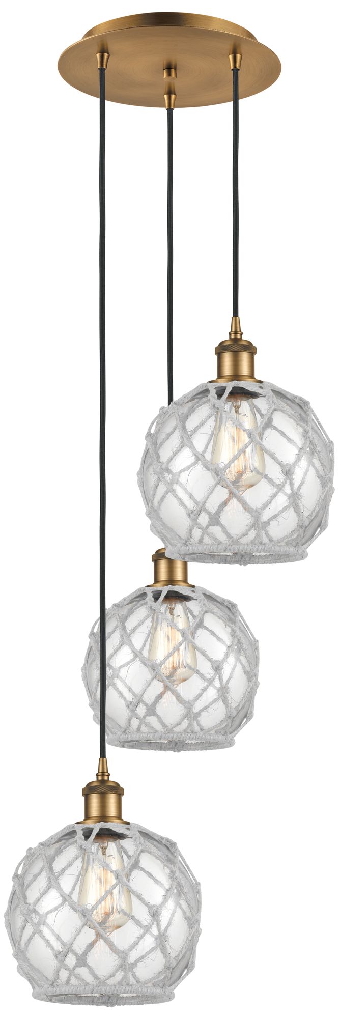 Ballston Brookhaven Almond 13"W 3-Lt Brass Cord Pendant w/ Opal Shade