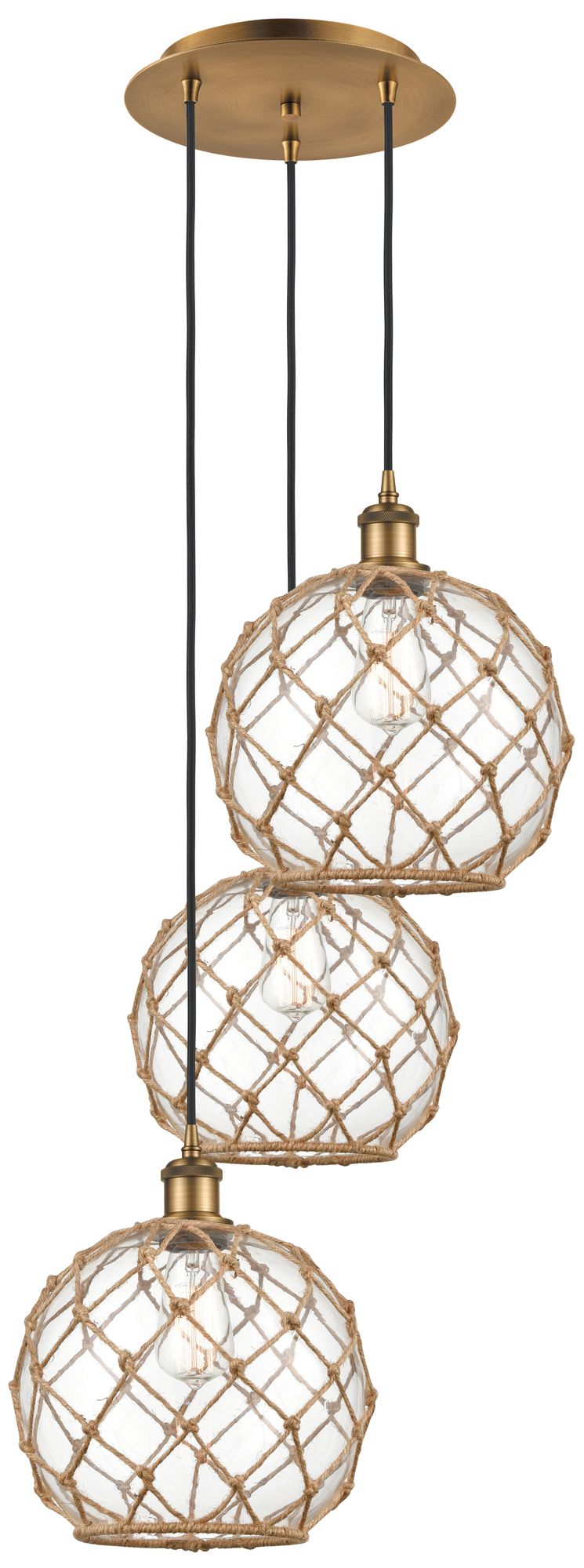 Ballston Farmhouse 17"W 3-Lt Brush Brass Cord Pendant w/ Clear Brown Shade