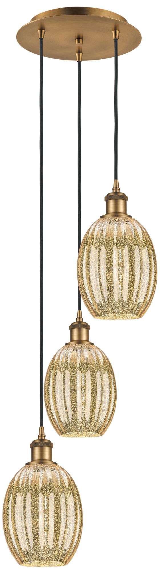 Ballston Preston 13"W 3-Lt Brushed Brass Cord Pendant w/ Mercury Bulb Shade