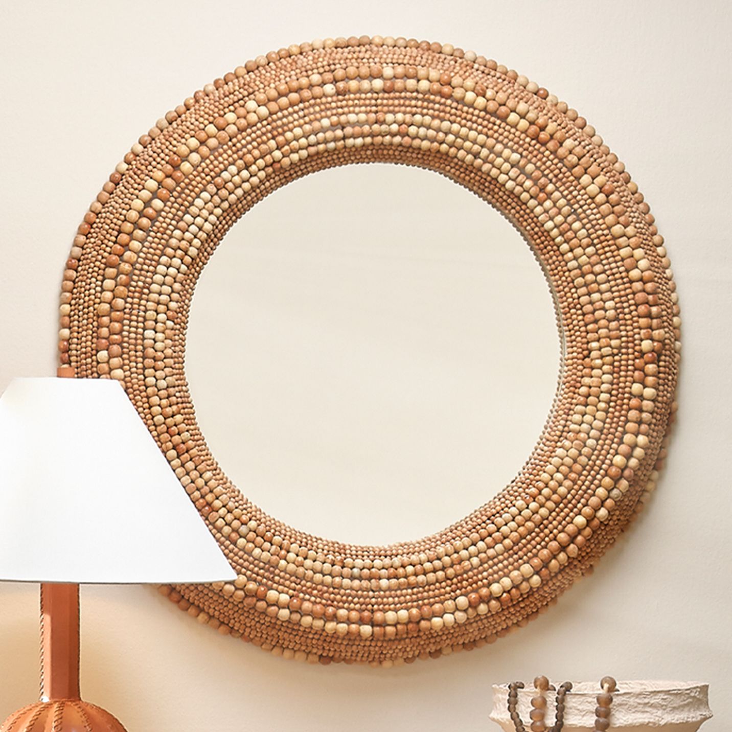 Jamie Young Strand Wood Beaded 37.5" Round Wall Mirror in Natural