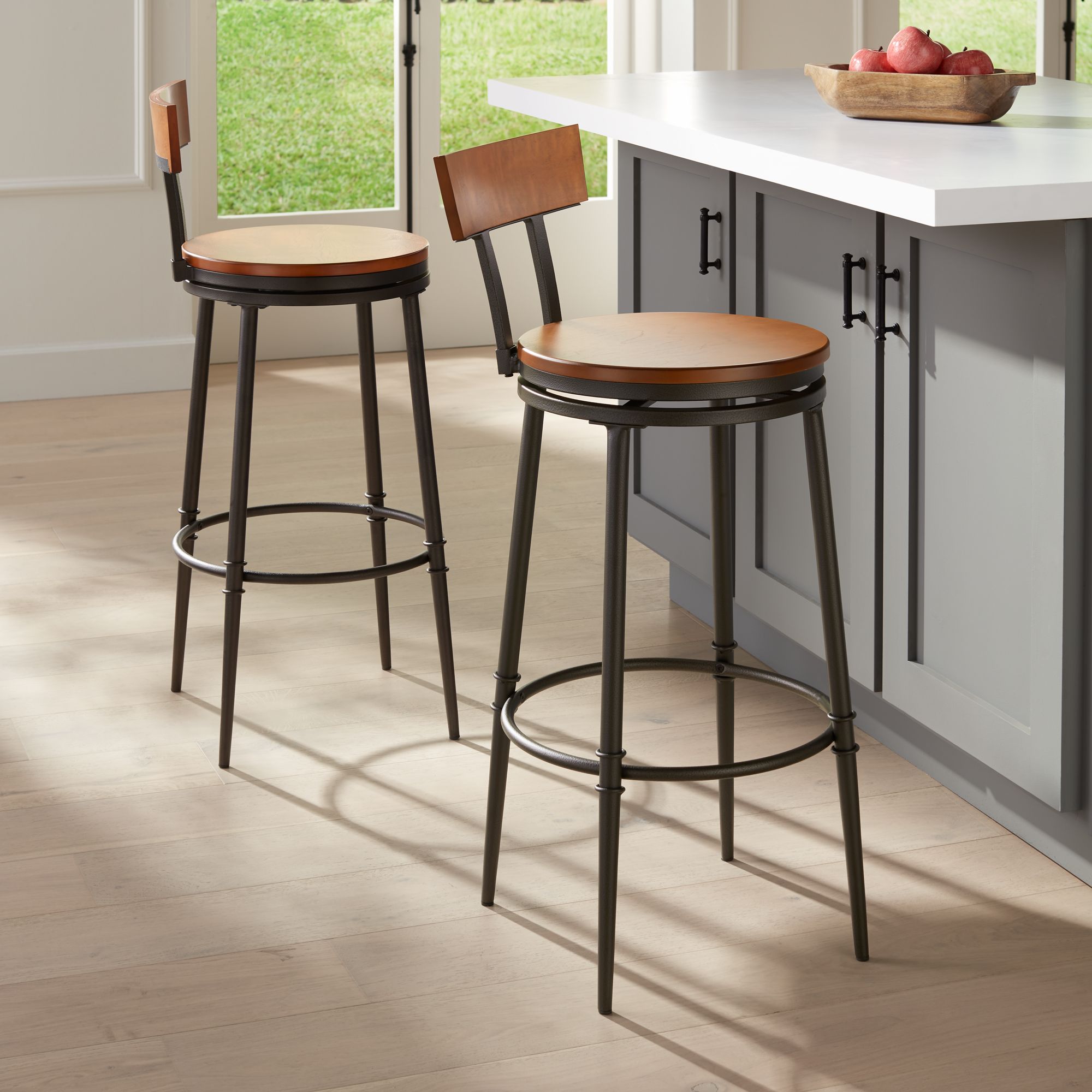 Malio 29 1/2" Hammered Bronze and Wood Bar Stools Set of 2