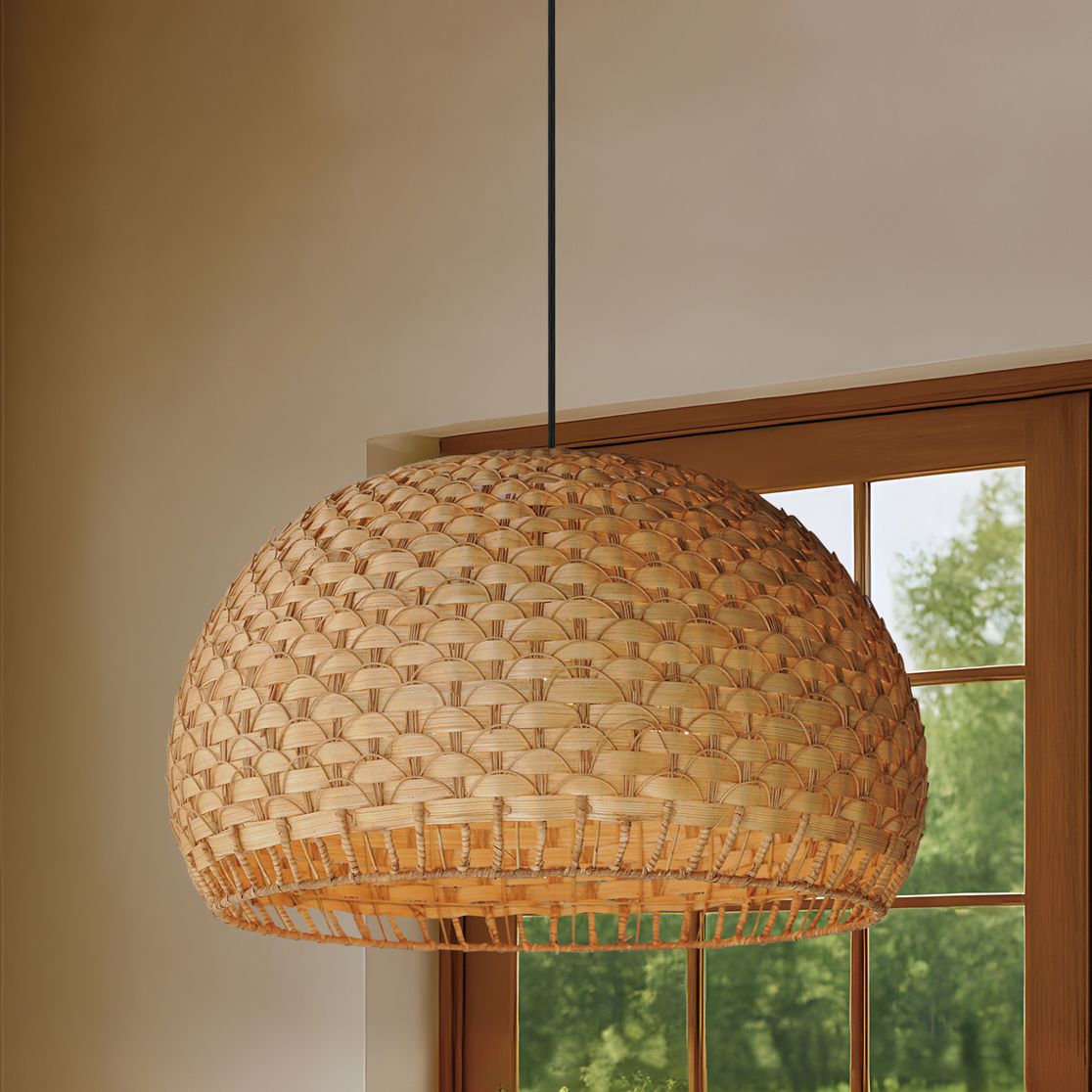 Bekah 24 1/4"W Champagne Bronze Pendant Light w/ Rattan Shade