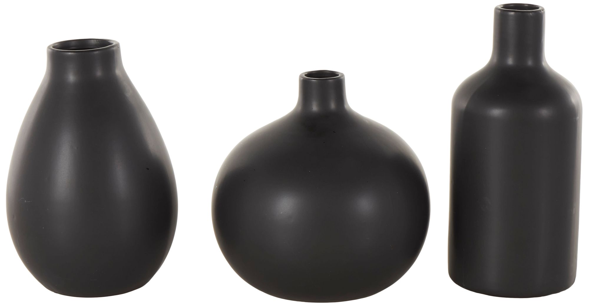 Black Ceramic Modern Planter, S/3 9", 8", 6"H