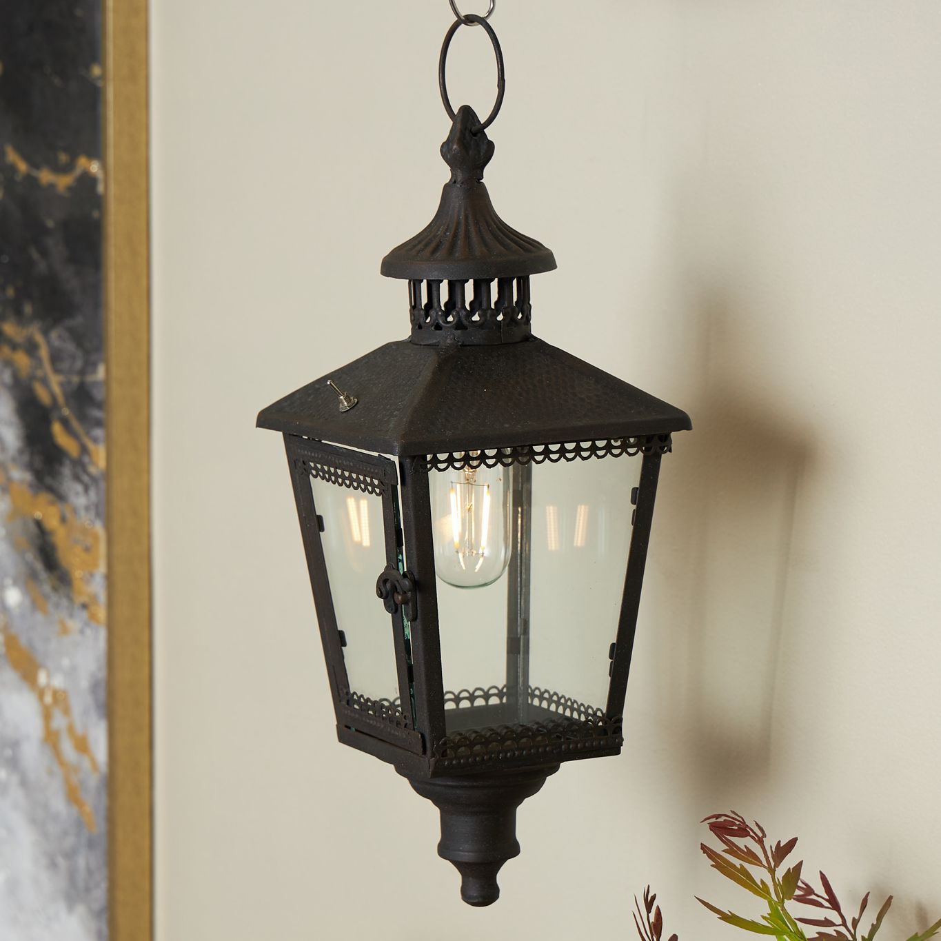 Black Metal Industrial Candle Lantern, 7" x 7" x 12"