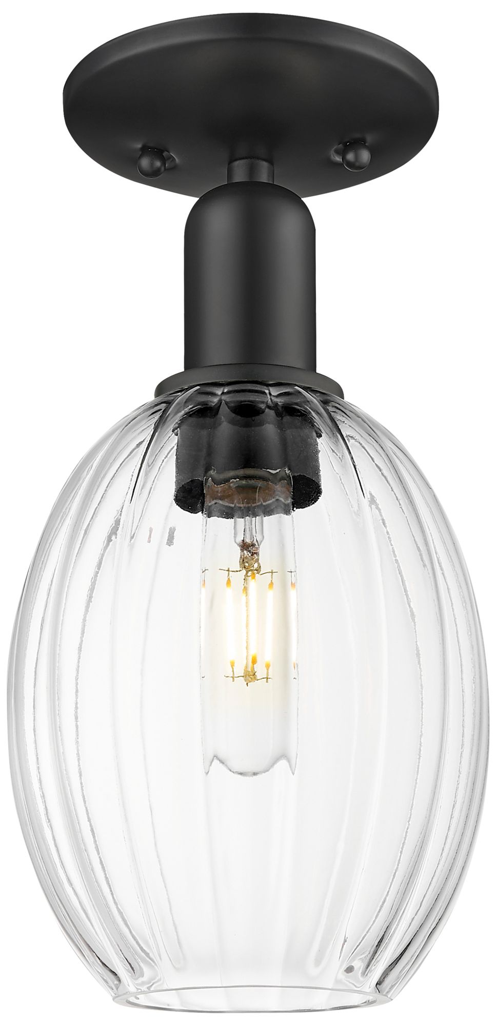 Downtown Preston 6"W Matte Black Semi Flush Mount w/ Clear Bulb Shade