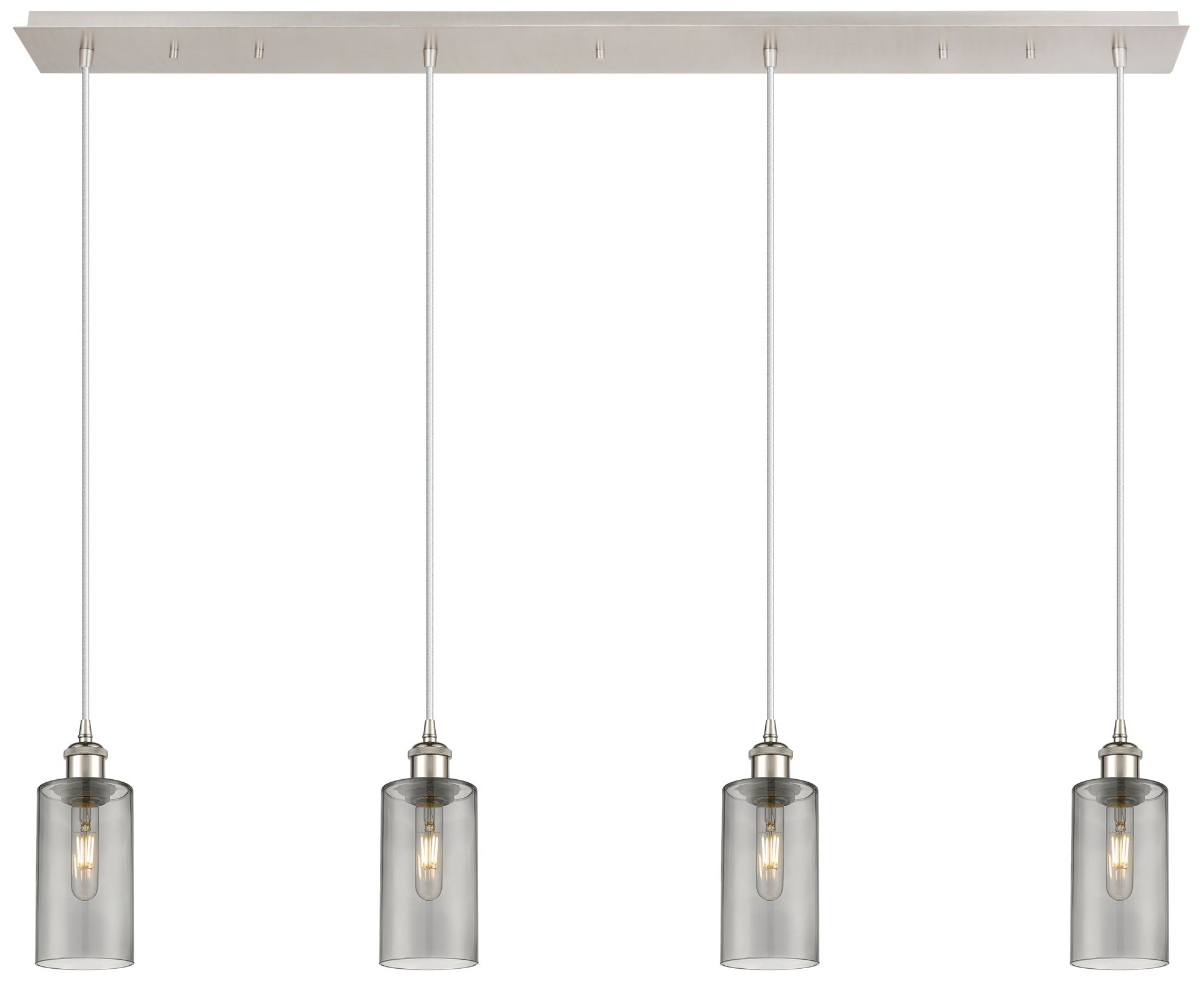 Crown Point 4 Light 49" Cord Hung Linear Pendant Nickel w/ Smoke Shade