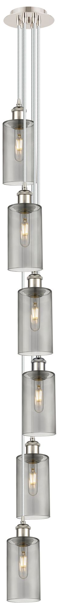 Crown Point 6 Light 7" Cord Hung Multi Pendant Nickel w/ Light Smoke Shade
