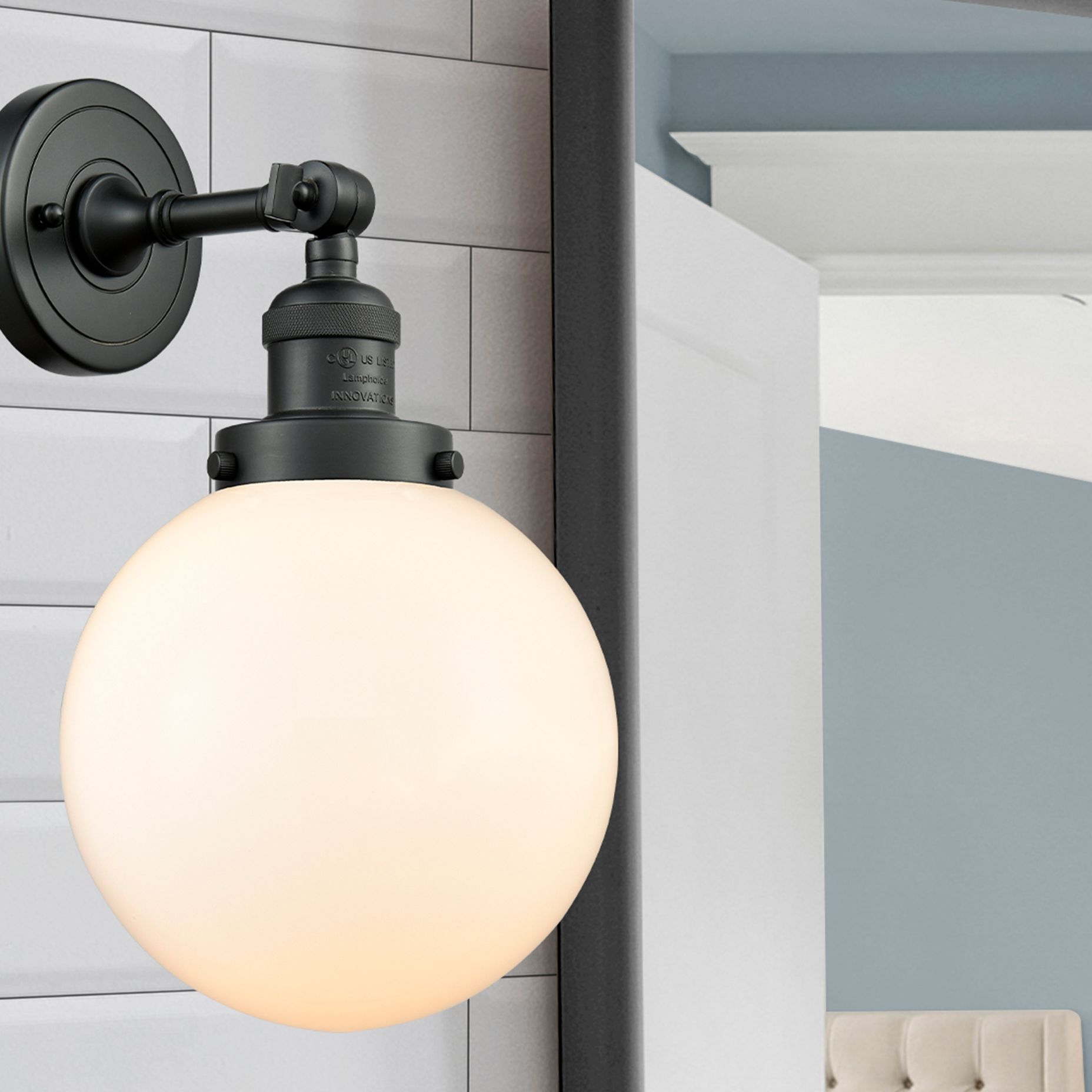 Franklin Restoration Large Beacon 8" Matte Black Sconce w/ White Shade