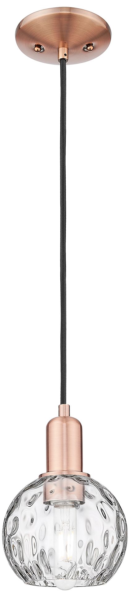 Arcadia Athens 6"W Copper Cord Hung Mini Pendant w/ Water Glass Shade