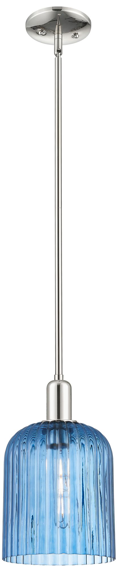 Downtown Bridal Veil 8"W Nickel Mini Pendant w/ Blue Deco Swirl Shade