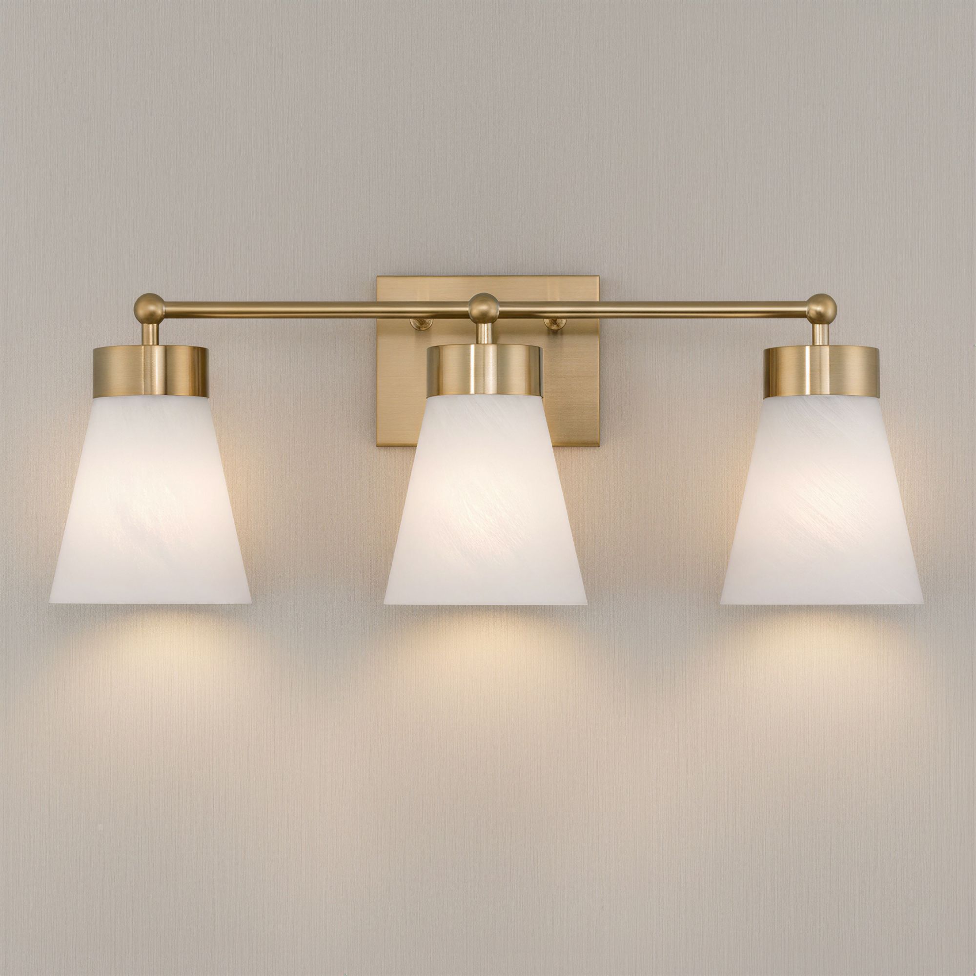 Hemingway 22" Wide Soft Gold and Cloud Glass 3-Light Bath Light