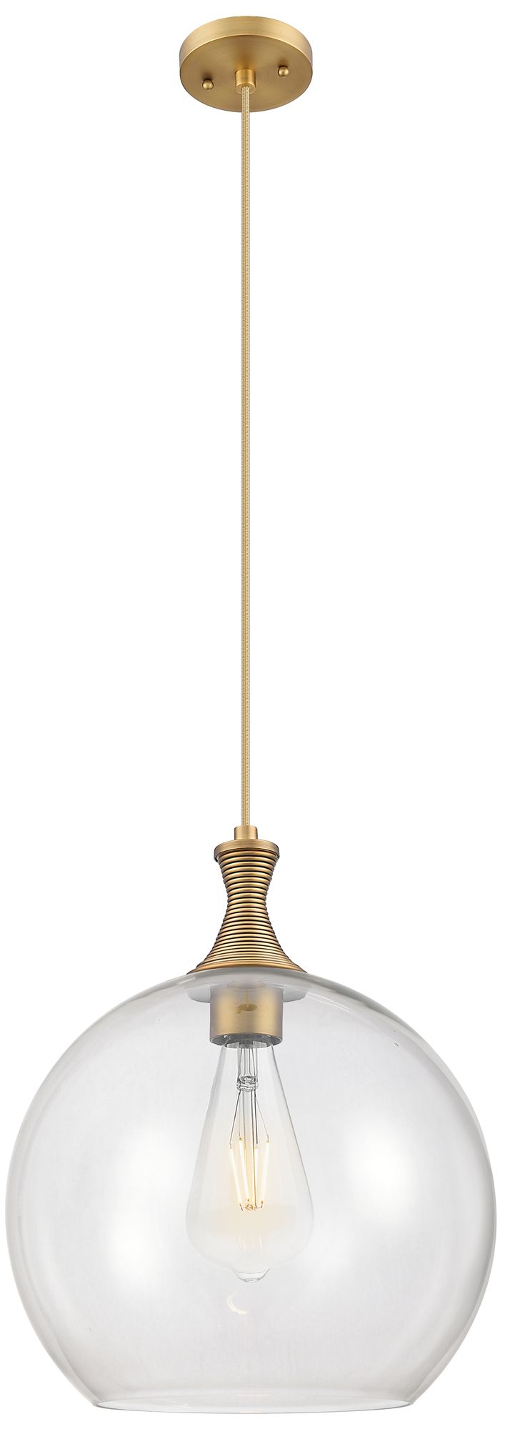 Downtown Astor 14"W Metal Cord Brushed Brass Pendant w/ Clear Shade