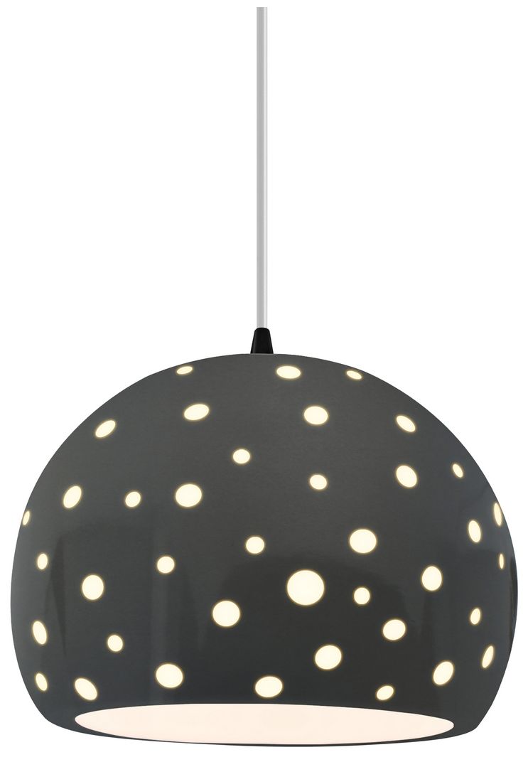 Perforated Globe 10"W Gloss Grey, Matte Black LED Pendant - Rigid Stem