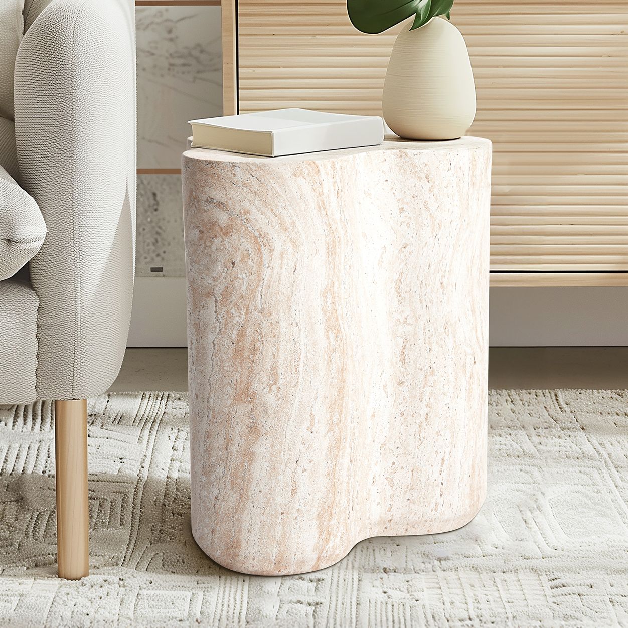 Clover Travertine Stone Finish Italian Design MgO Side Accent Table