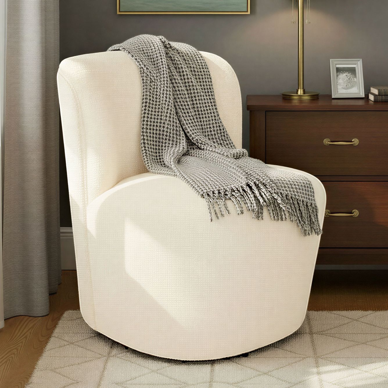 Boucle Swivel Accent Chair, Ivory