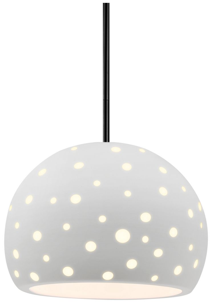 Perforated Dish 12" Wide Bisque Pendant With Nickel Black Cord