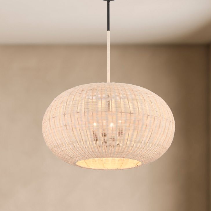 Minka-Lavery Modjeska 4-Light Coal Black Pendant with Natural Rattan Shade