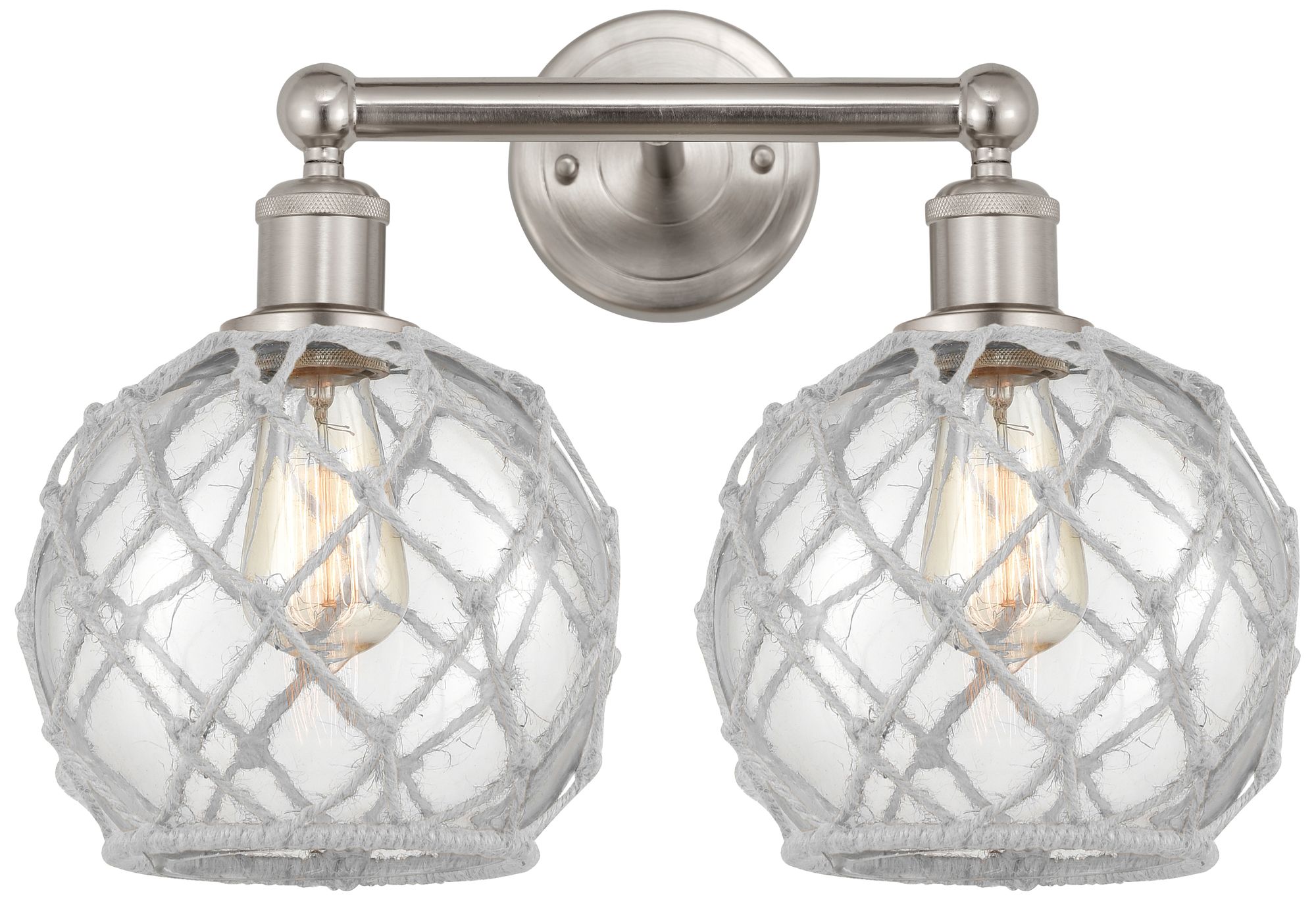 Farmhouse Rope 16"W 2 Light Brushed Nickel Bath Light w/ White Rope Sh