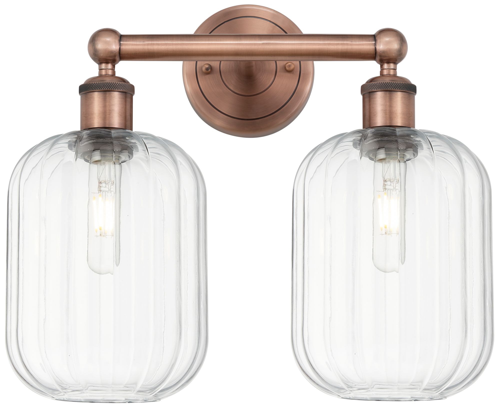 Edison Preston 16"W 2 Light Copper Vanity Light With Clear Jar Shade