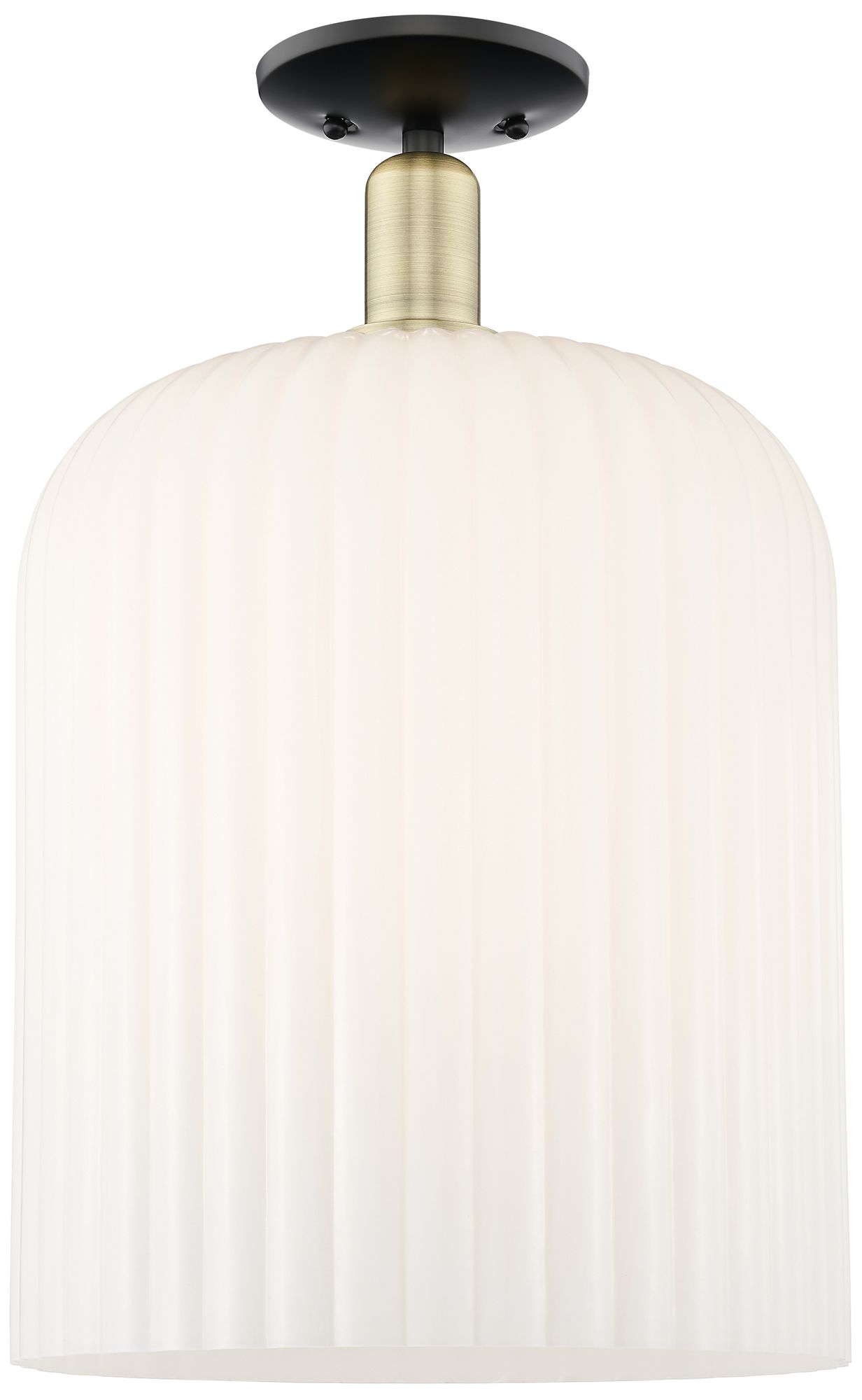 Bridal Veil 12"W Black Antique Brass Semi-Flush With Gloss White Shade