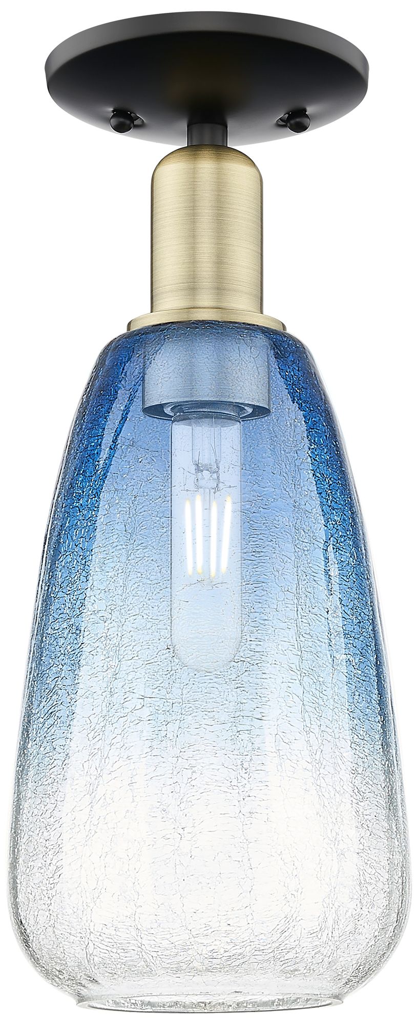Ballston Vaz 8"W Black Antique Brass Semi-Flush w/ Princess Blue Shade