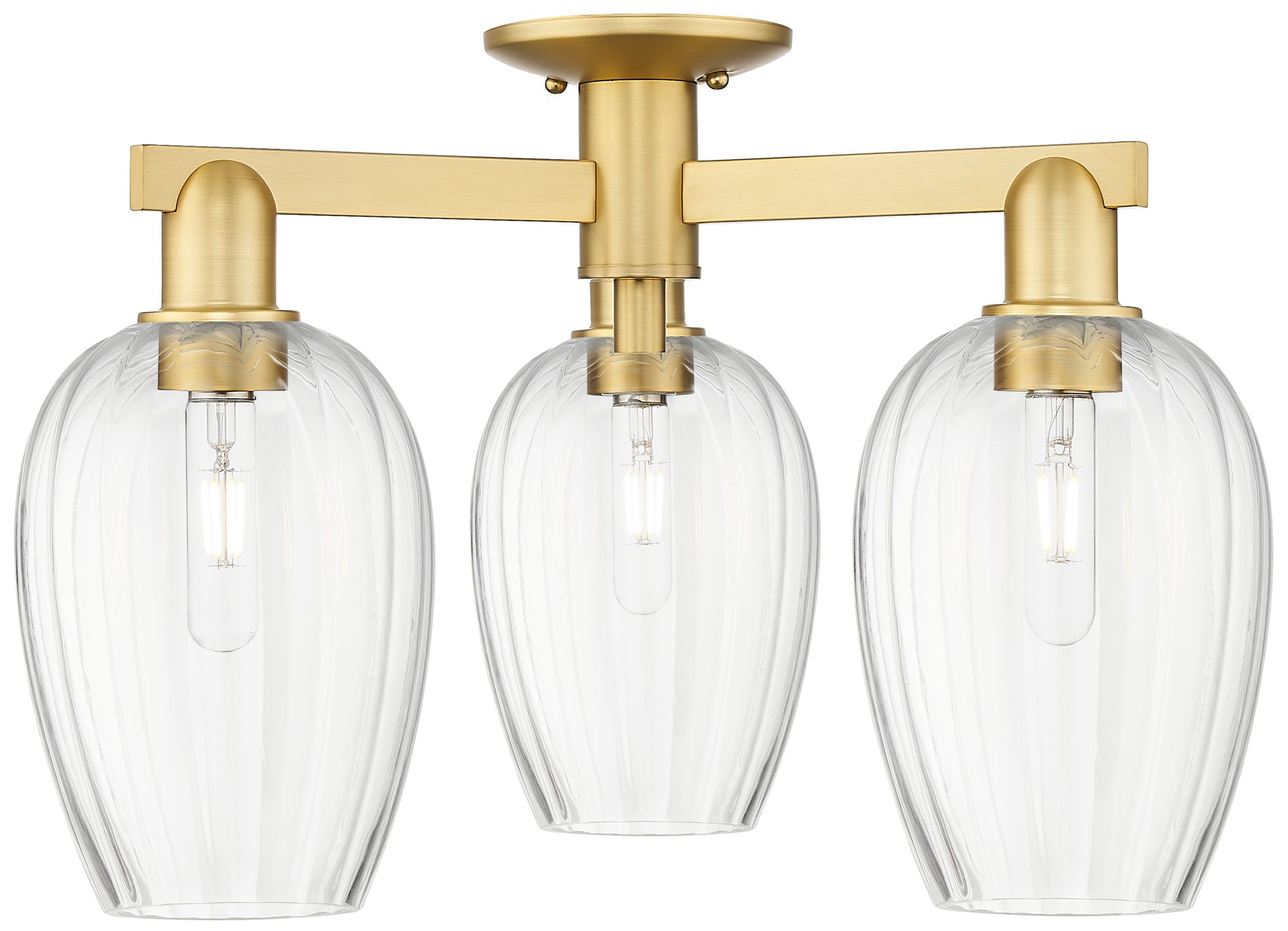 Preston 24"W 3 Light Satin Gold Semi-Flush Mount With Flute Clear Shade