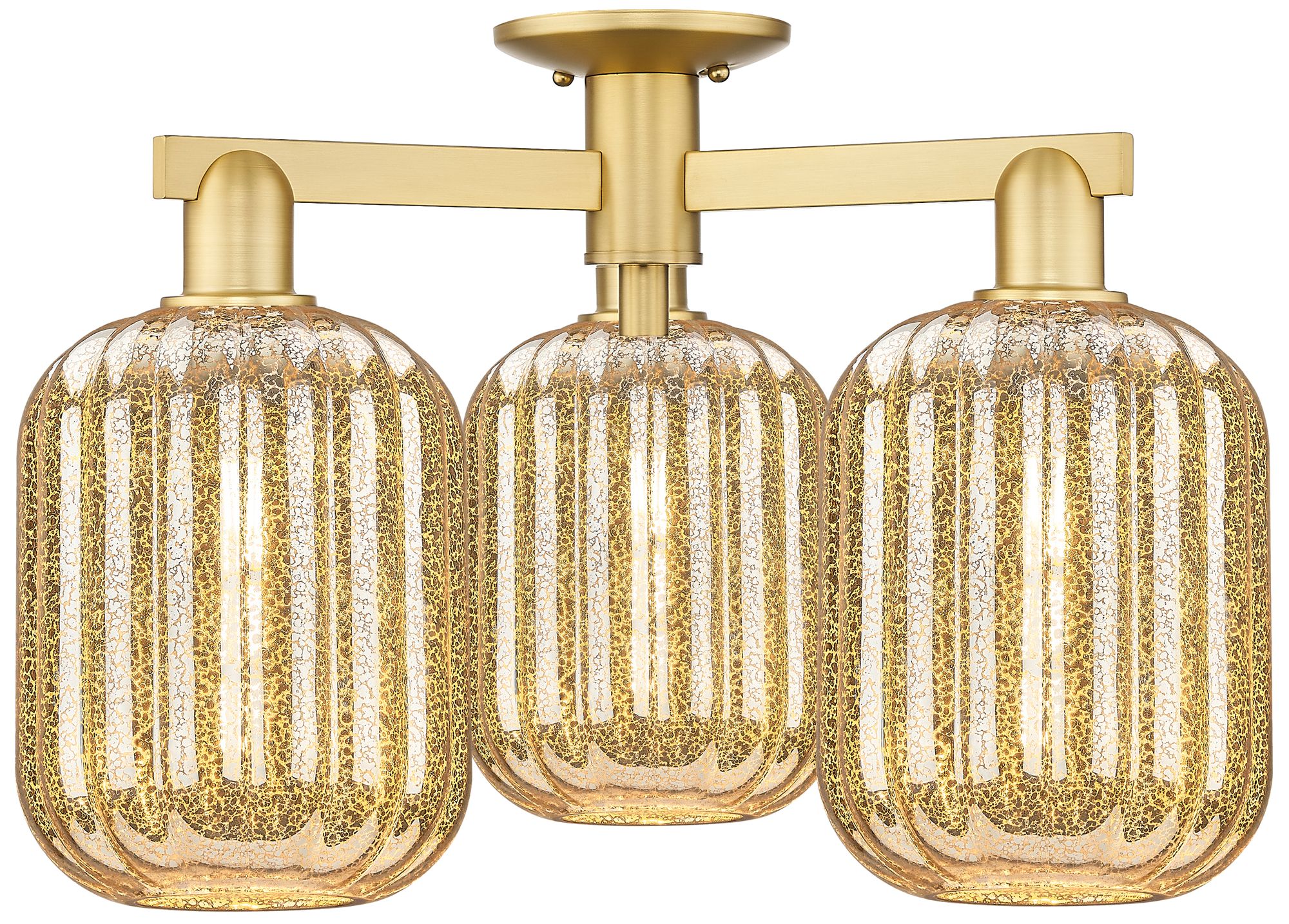 Preston 24"W 3 Light Satin Gold Semi-Flush Mount With Mercury Jar Shade