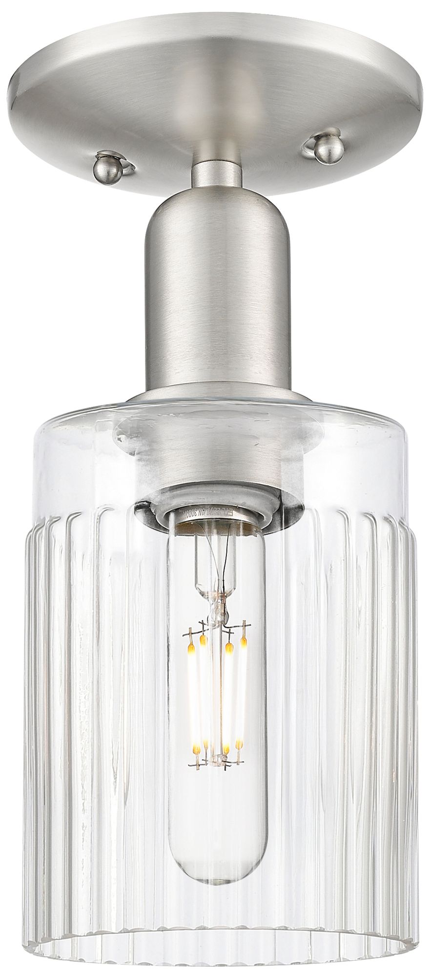 Arcadia Hadley 5"W Brushed Nickel Semi.Flush Mount With Clear Shade