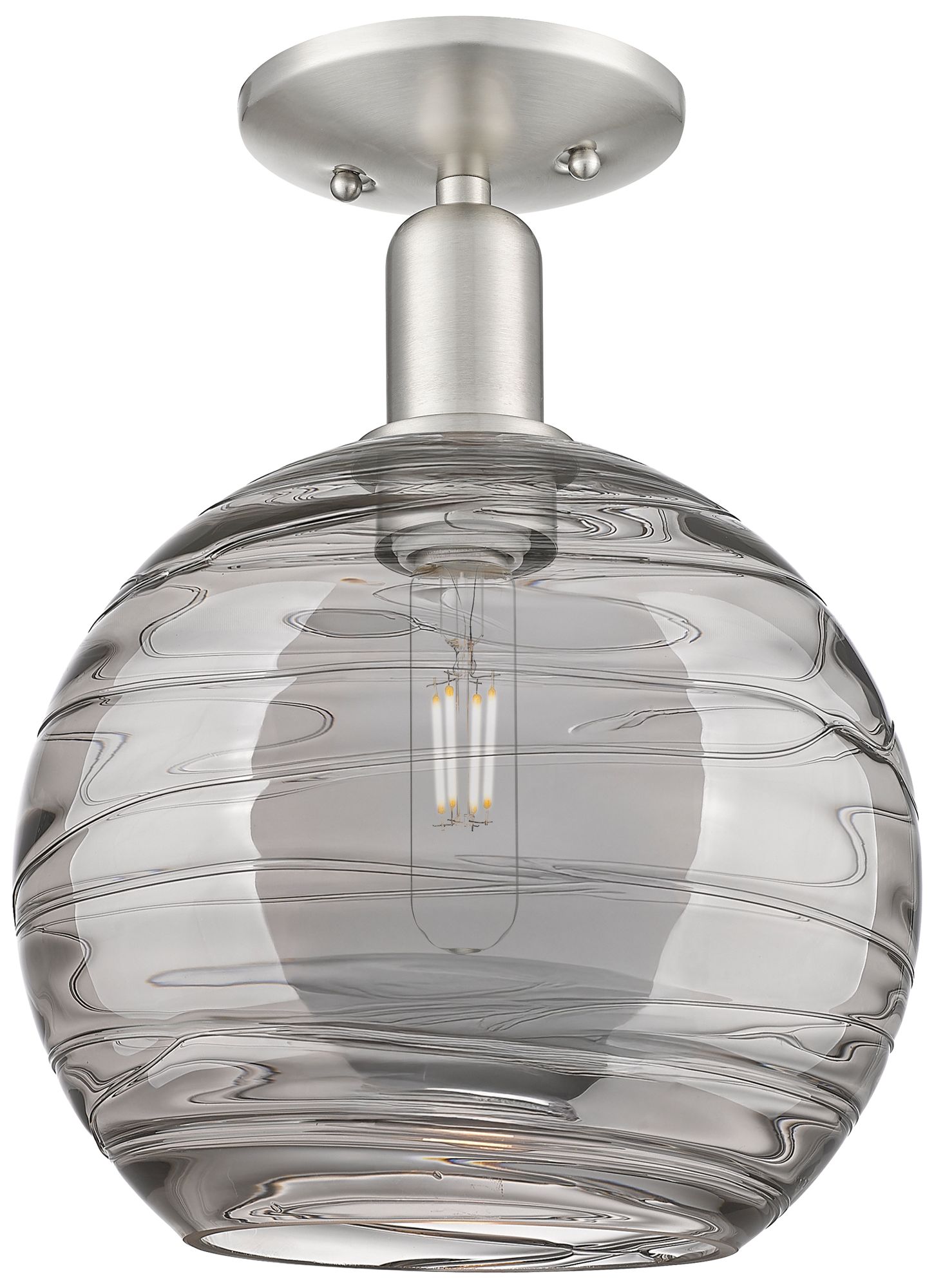 Arcadia Athens 10"W Nickel Semi-Flush w/ Light Smoke Deco Swirl Shade