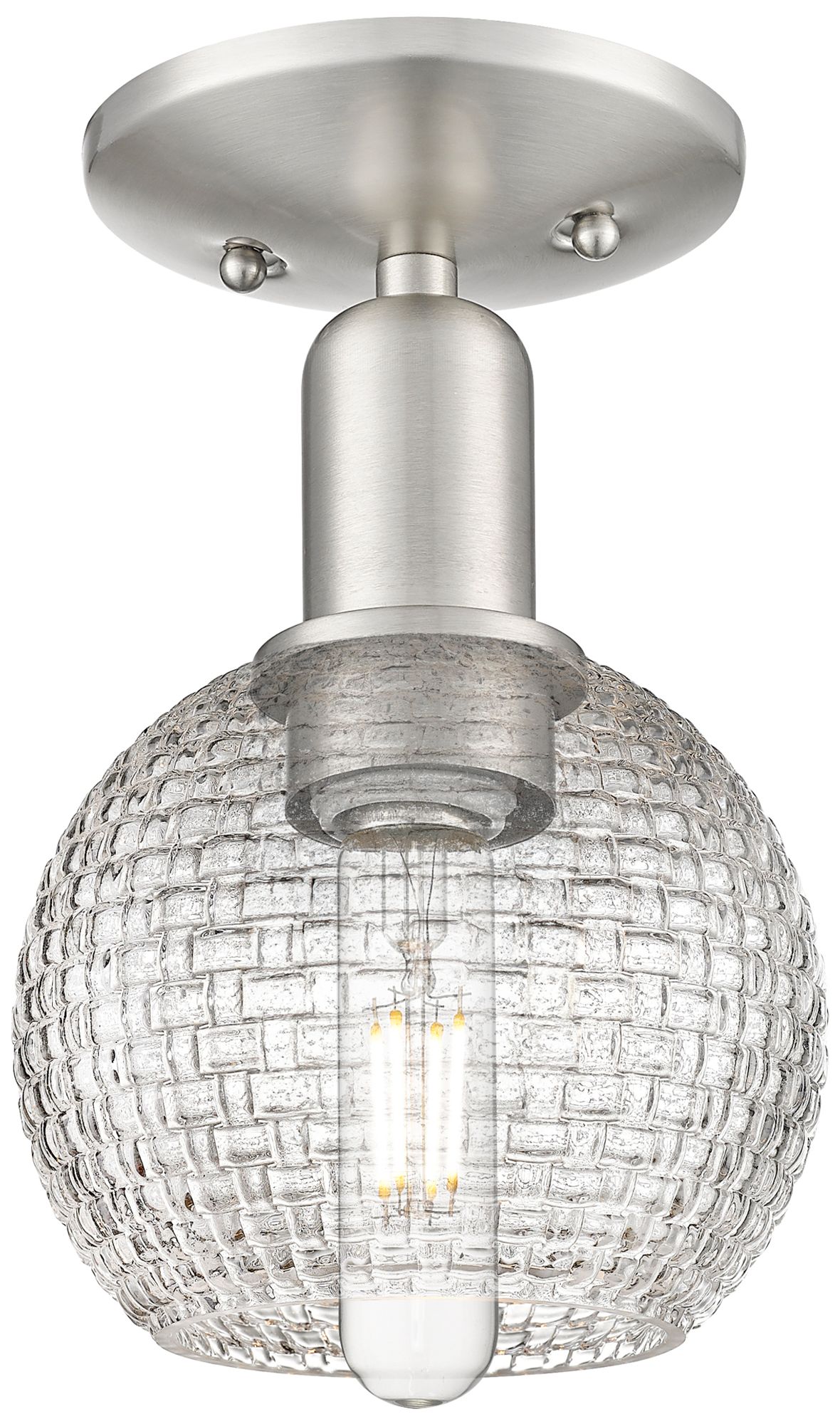 Arcadia Athens 6"W Nickel Semi-Flush w/ Clear Basket Weave Shade