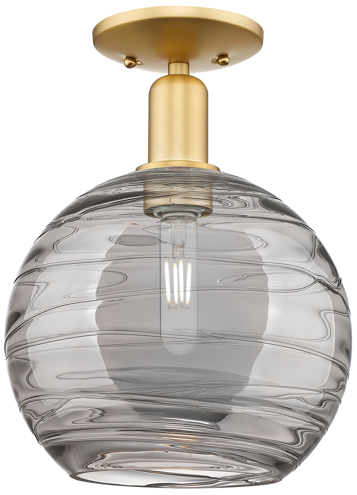 Arcadia Athens 10"W Gold Semi-Flush w/ Light Smoke Deco Swirl Shade