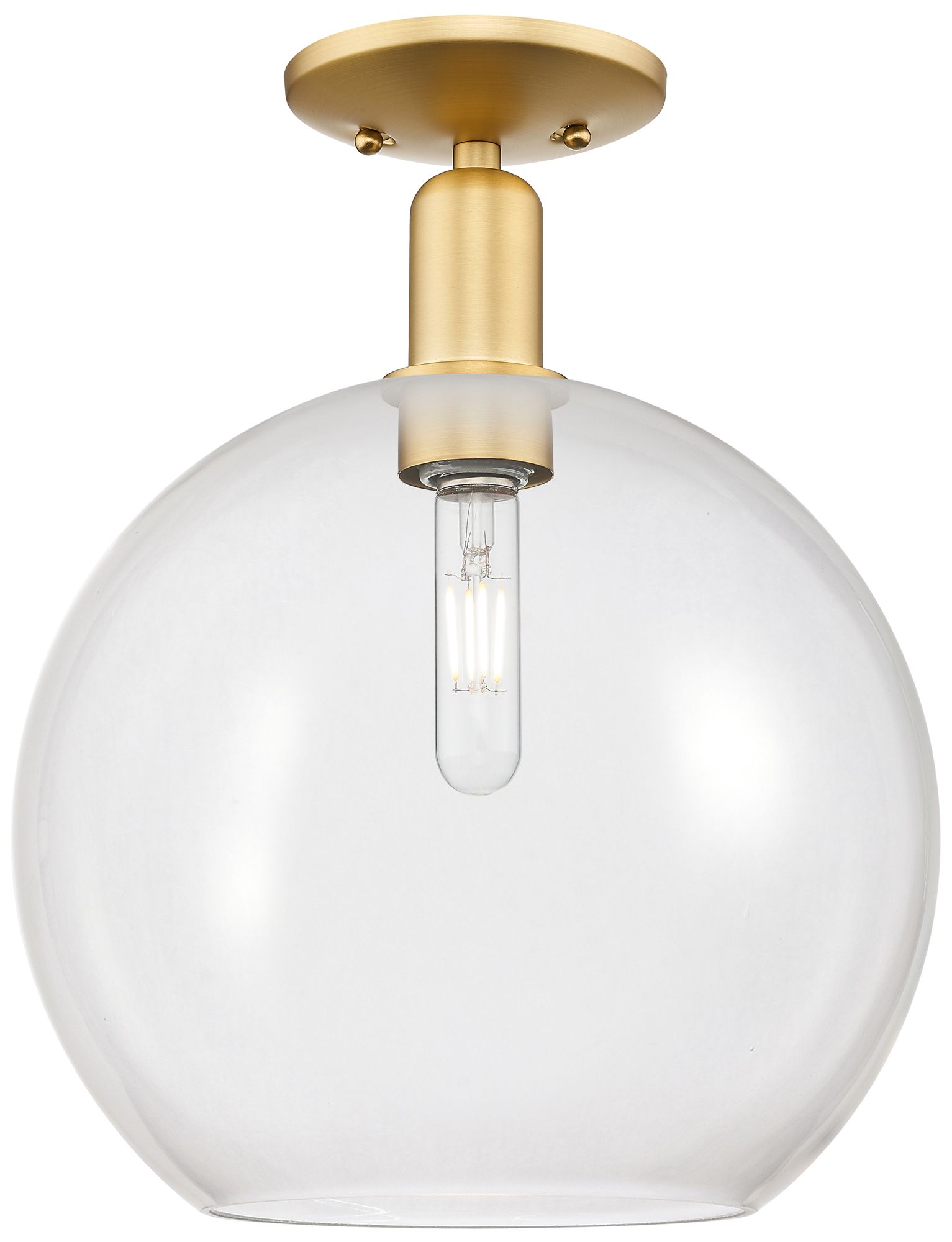 Arcadia Athens 12" Wide Satin Gold Semi.Flush Mount With Clear Shade