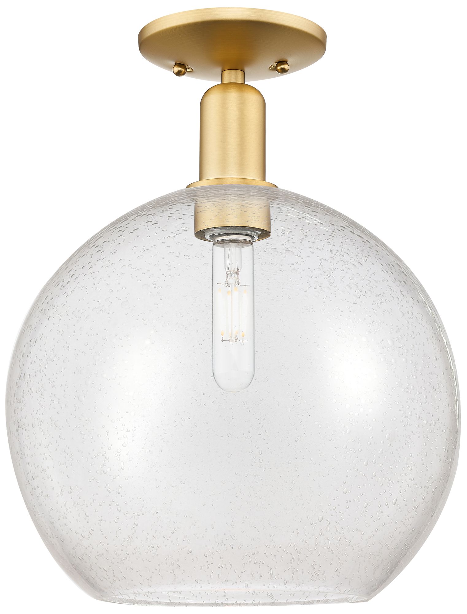 Arcadia Athens 12" Wide Satin Gold Semi.Flush Mount With Seedy Shade