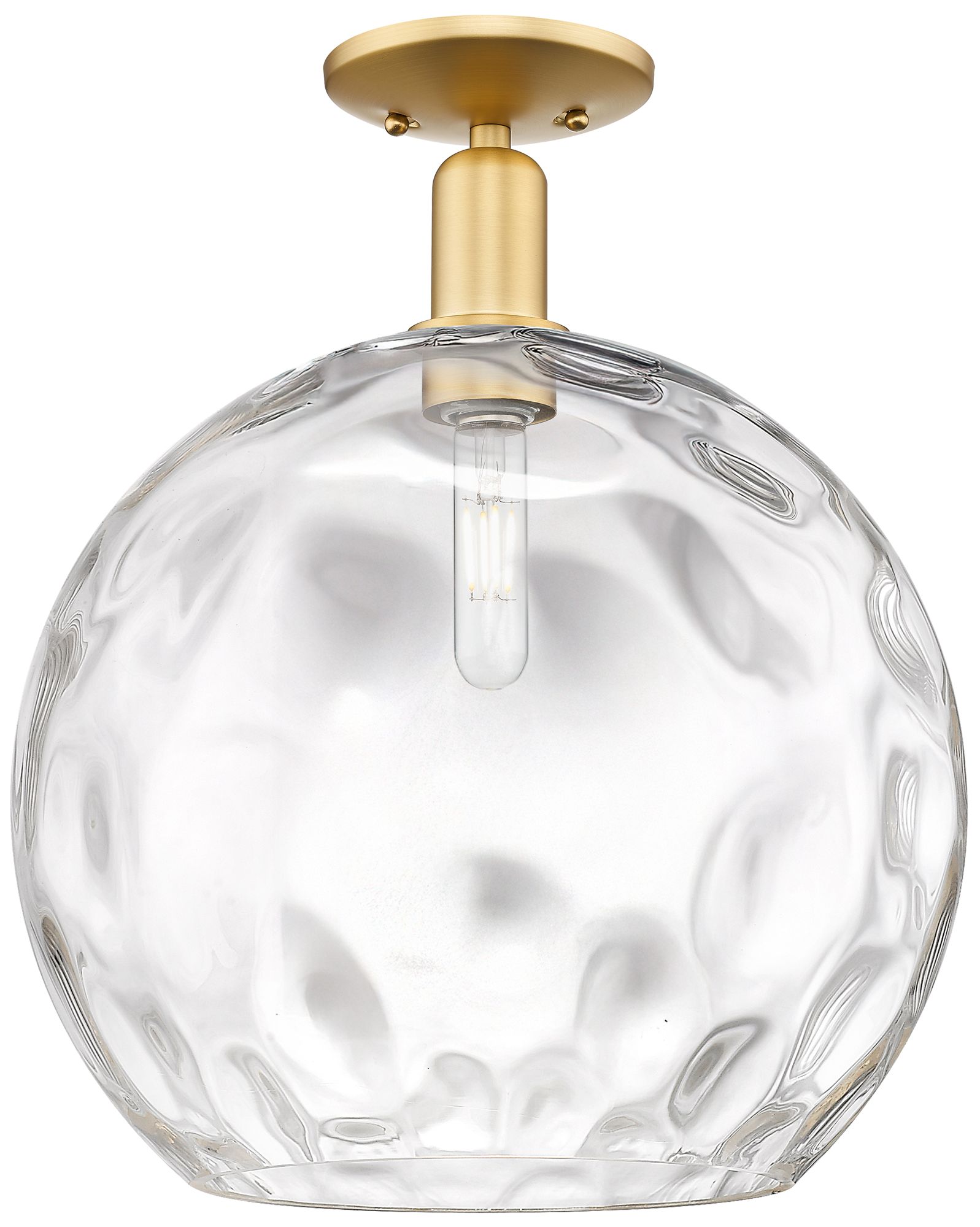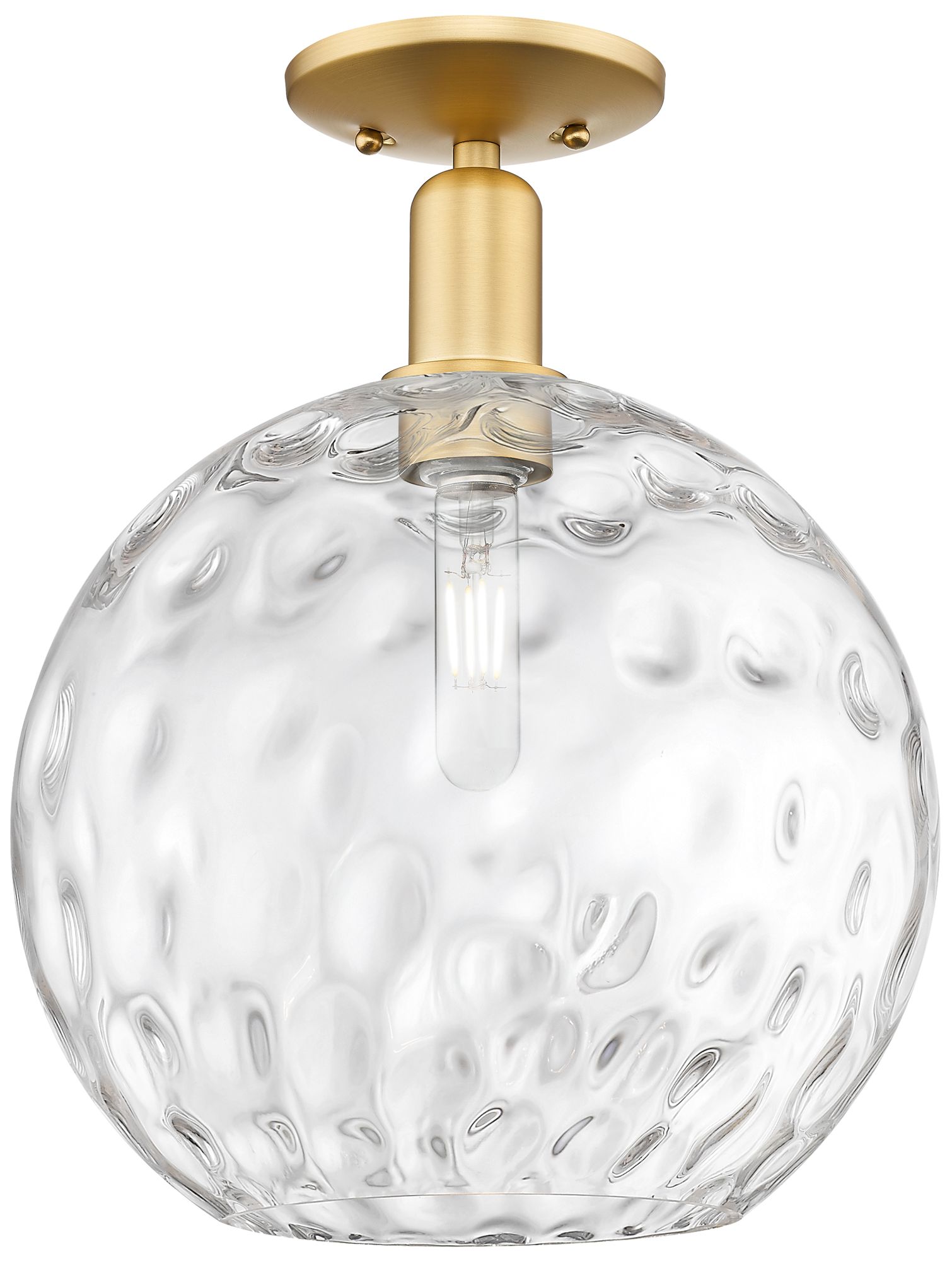 Arcadia Athens 12"W Satin Gold Semi.Flush Mount With Water Glass Shade