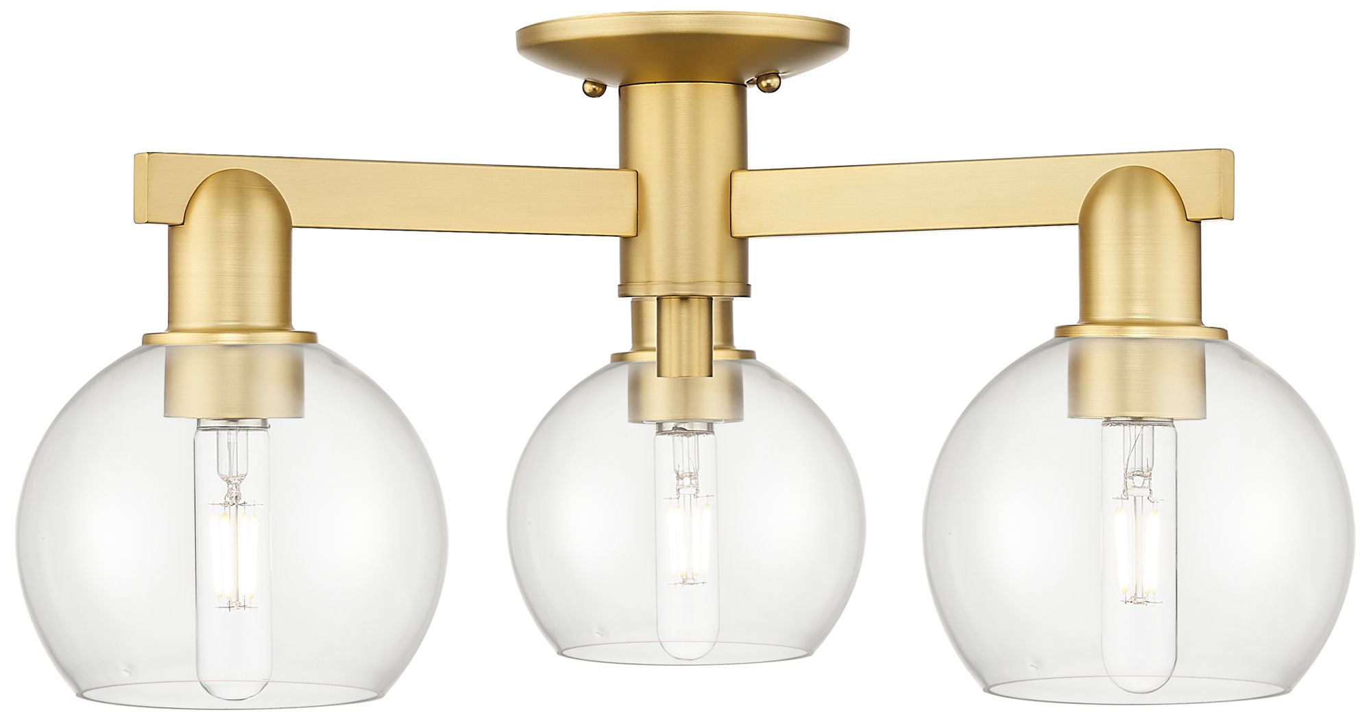Arcadia Athens 23"W 3 Light Satin Gold Semi.Flush Mount w/ Clear Shade