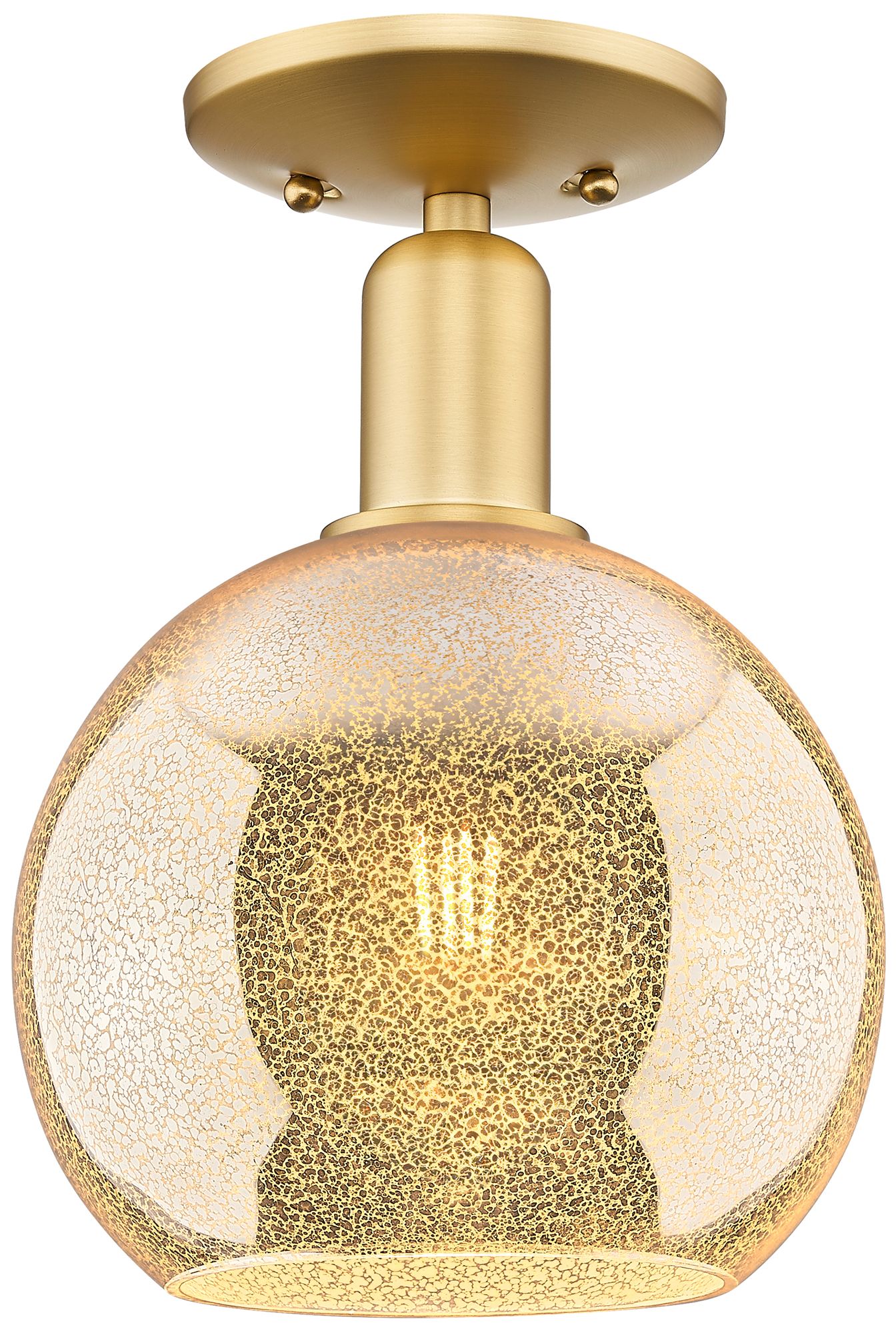 Arcadia Athens 8" Wide Satin Gold Semi.Flush Mount With Mercury Shade