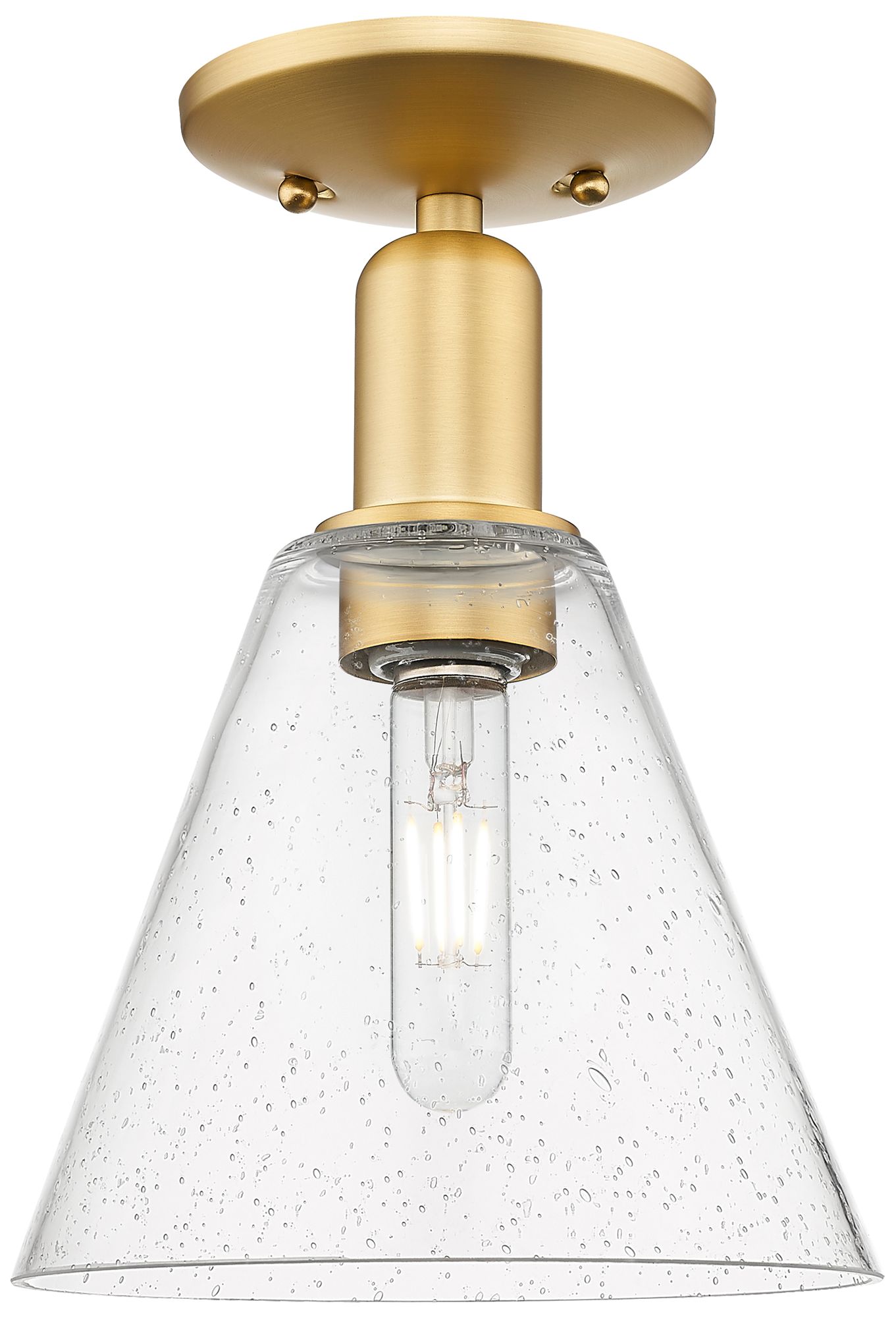 Arcadia Bristol 8" Wide Satin Gold Semi.Flush Mount With Seedy Shade