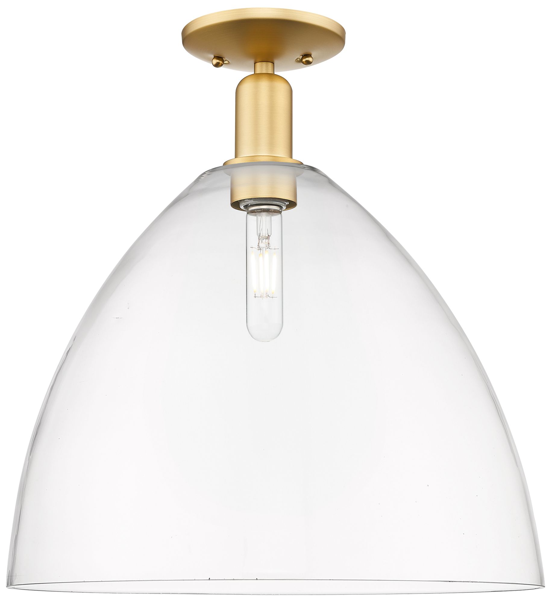 Arcadia Bristol 16" Wide Satin Gold Semi.Flush Mount With Clear Shade