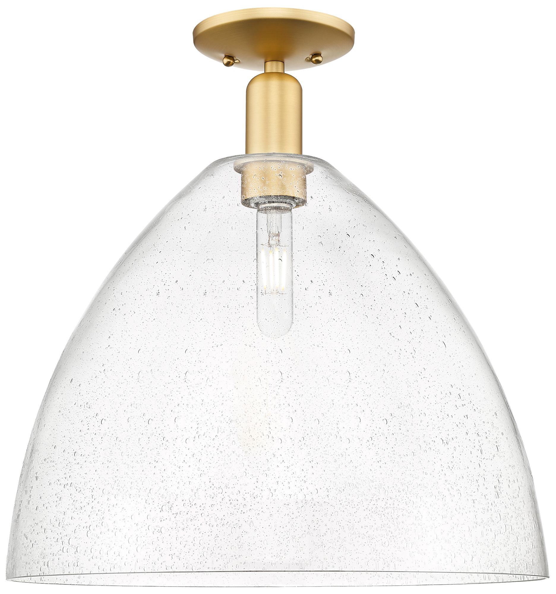 Arcadia Bristol 16" Wide Satin Gold Semi.Flush Mount With Seedy Shade