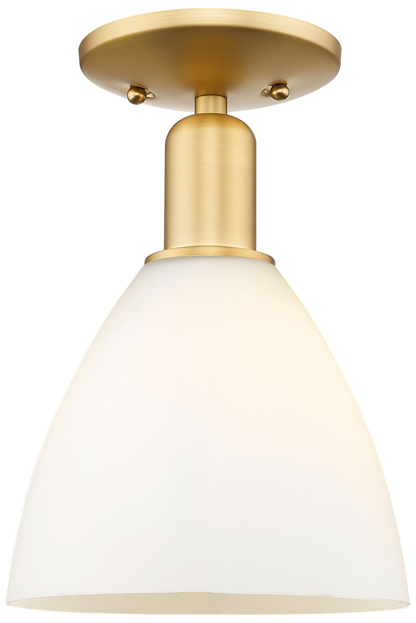 Arcadia Bristol 8"W Satin Gold Semi.Flush Mount With Matte White Shade