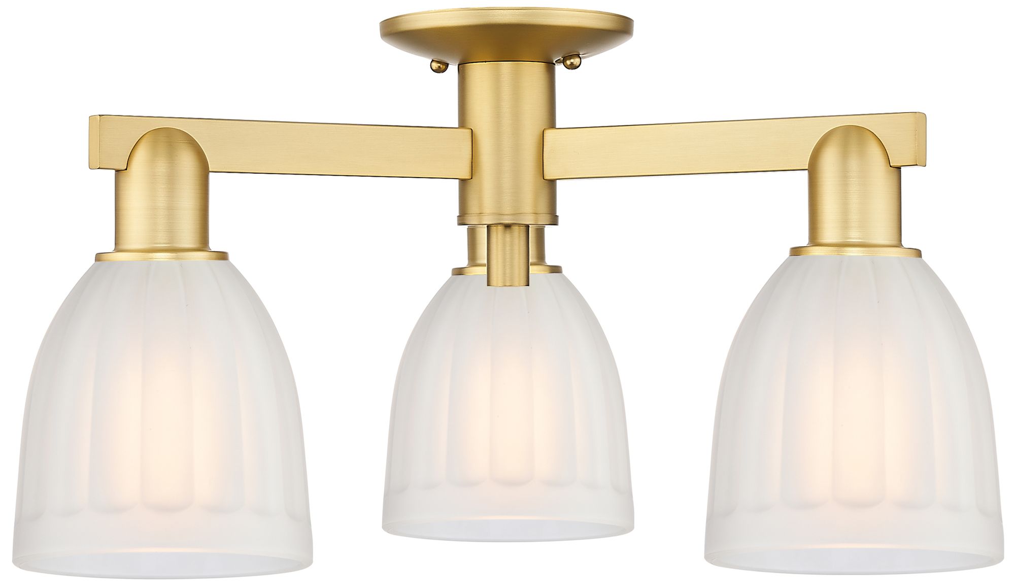 Arcadia Brookfield 23"W 3 Light Gold Semi.Flush Mount w/ White Shade