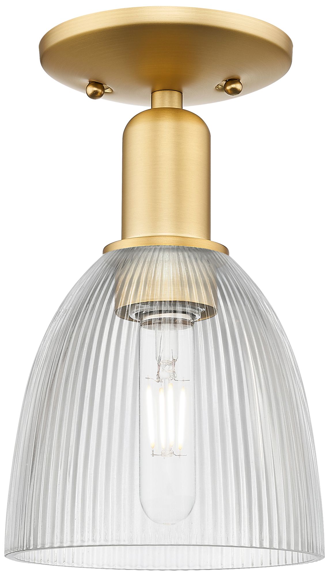 Arcadia Castile 6" Wide Satin Gold Semi.Flush Mount With Clear Shade