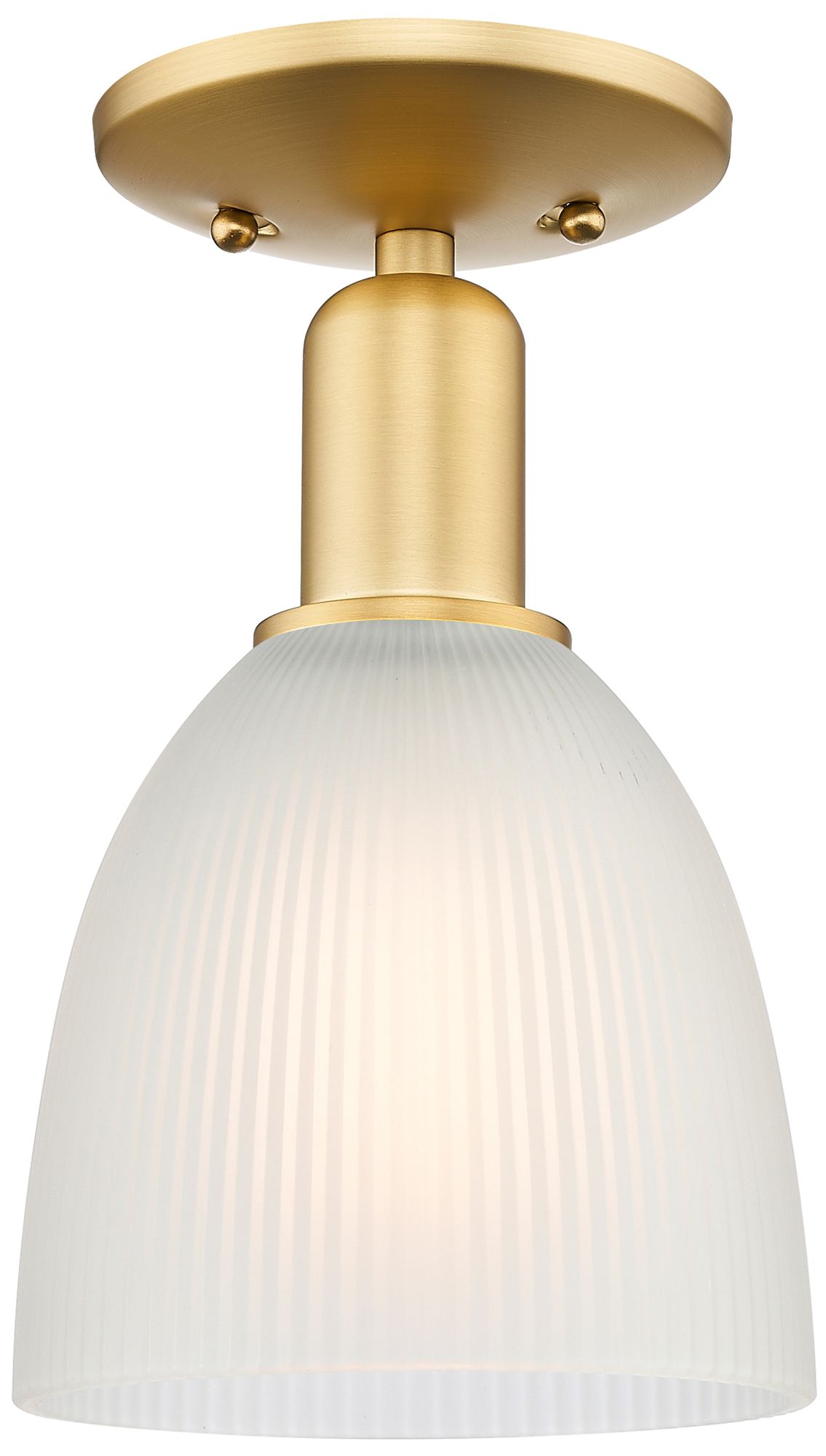 Arcadia Castile 6" Wide Satin Gold Semi.Flush Mount With White Shade