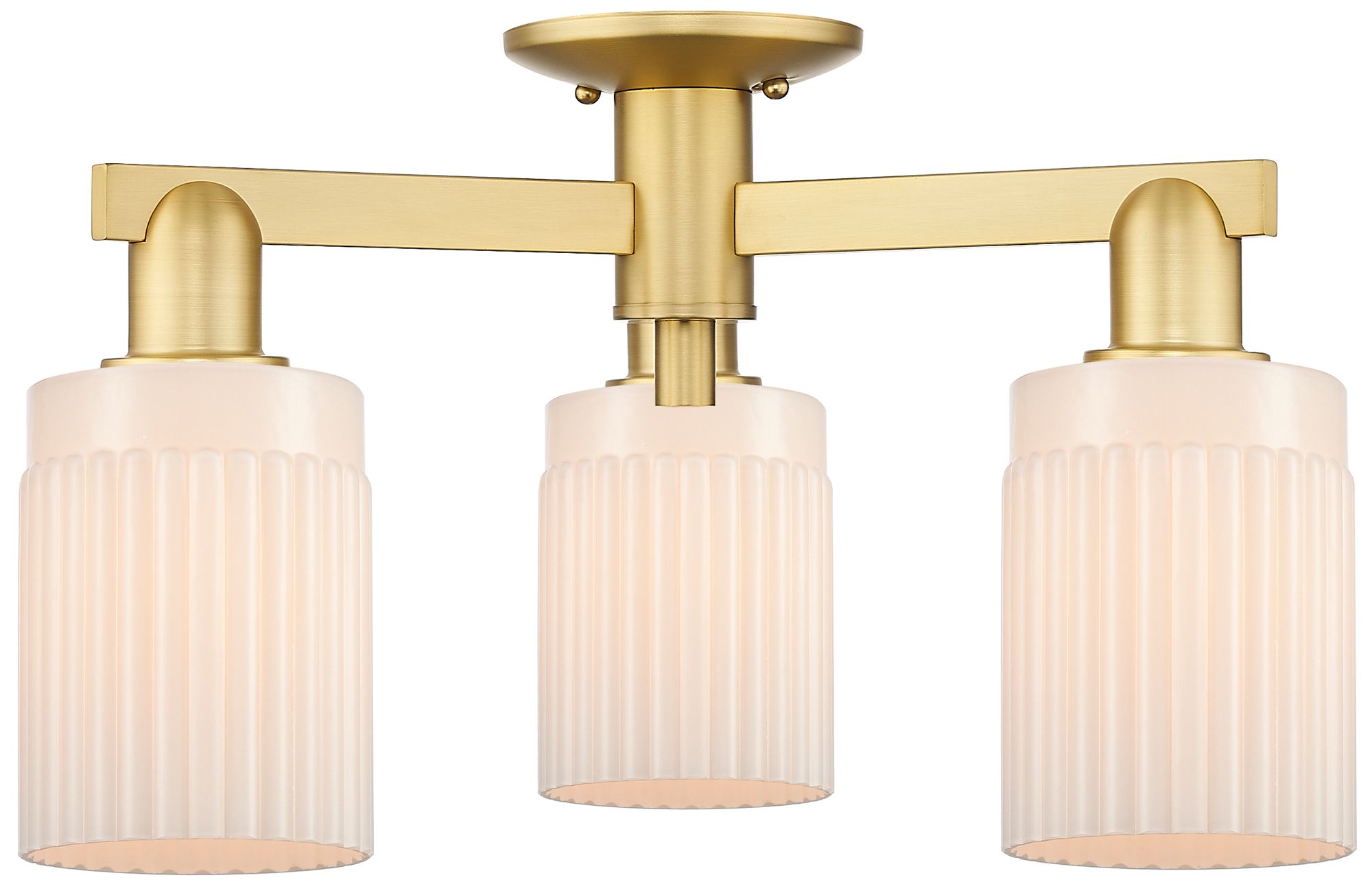 Arcadia Hadley 22"W 3 Light Gold Semi.Flush Mount w/ Matte White Shade