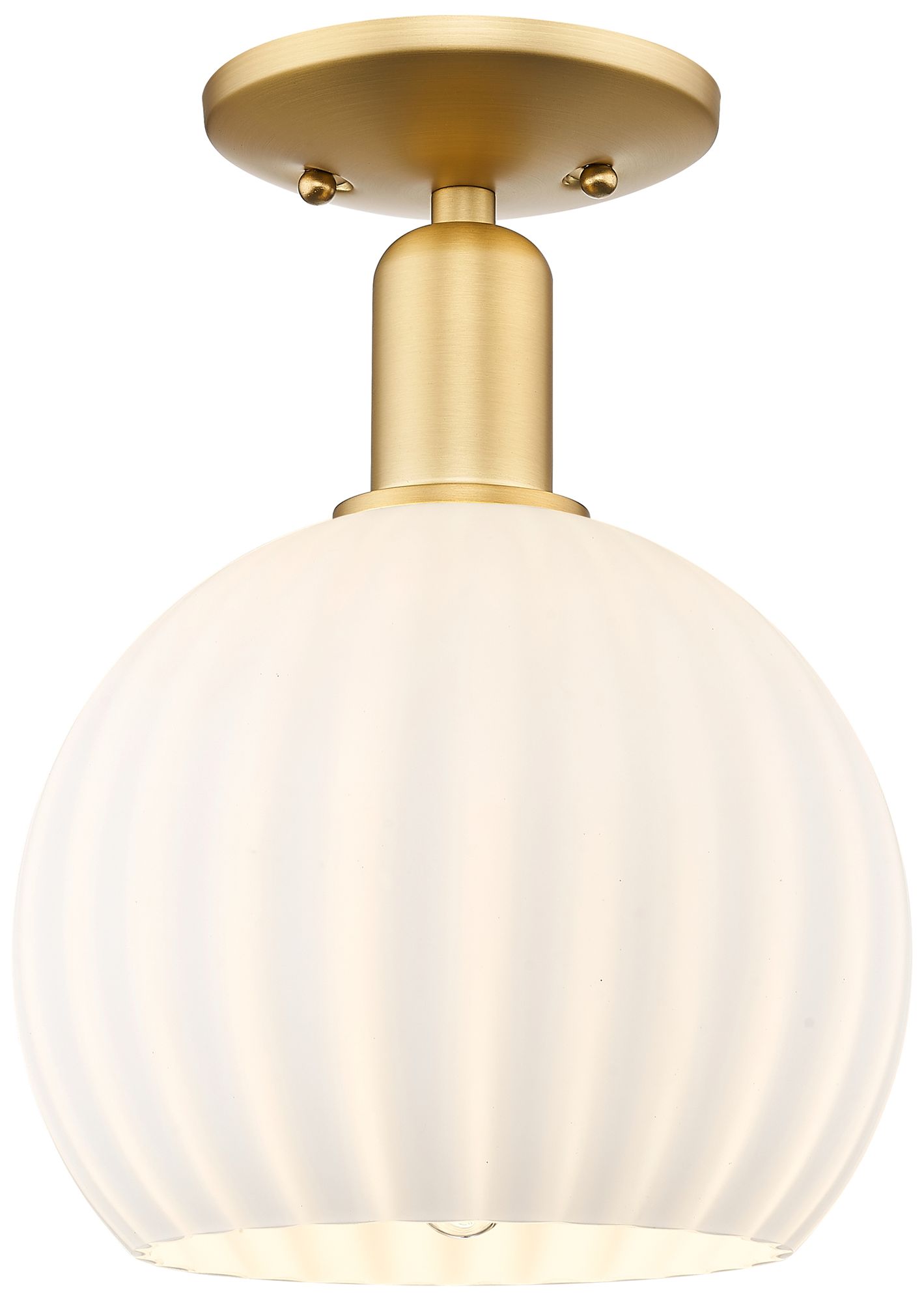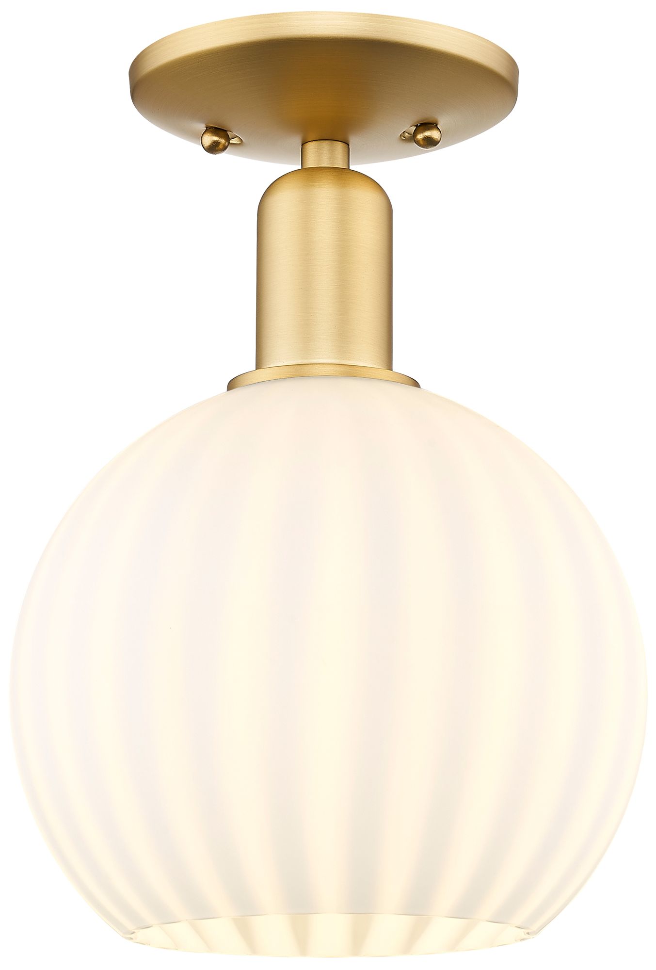 Ballston Chelsea 8" Wide Satin Gold Semi.Flush Mount With White Shade