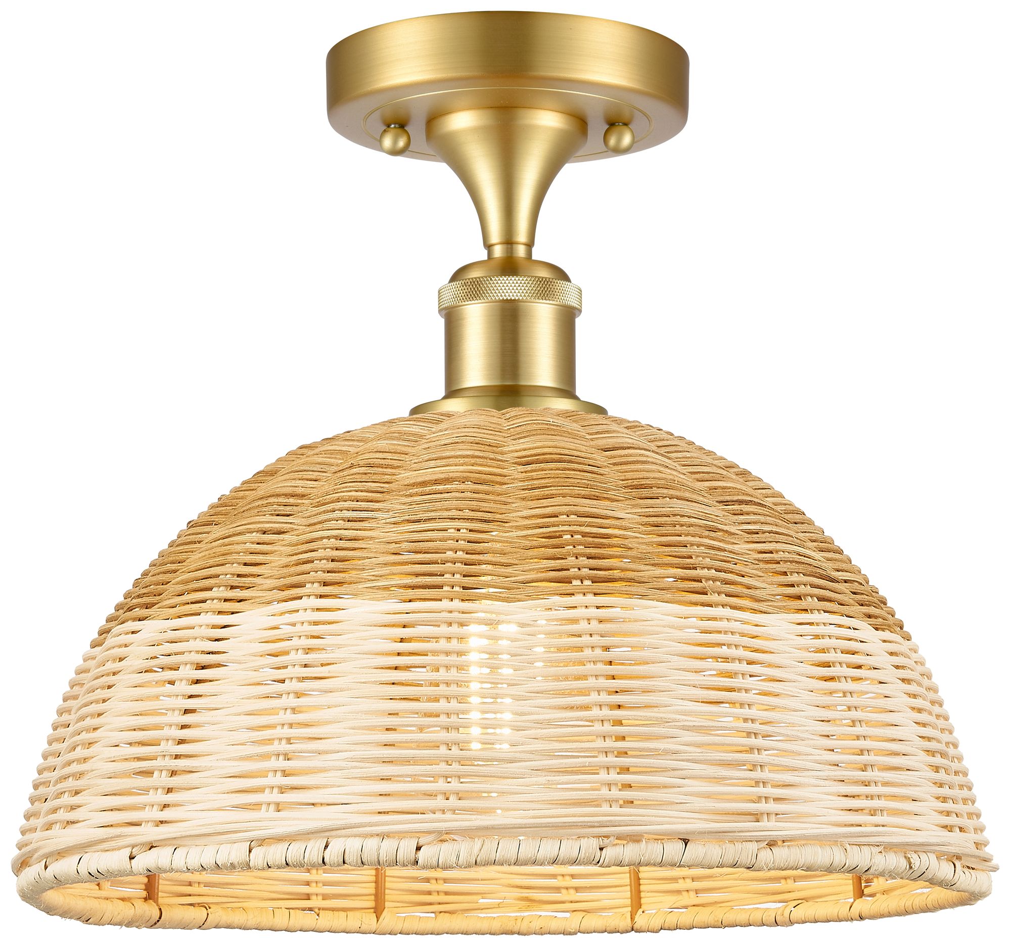 Ballston Bristol Natural II 12" Wide Satin Gold Semi.Flush Mount With