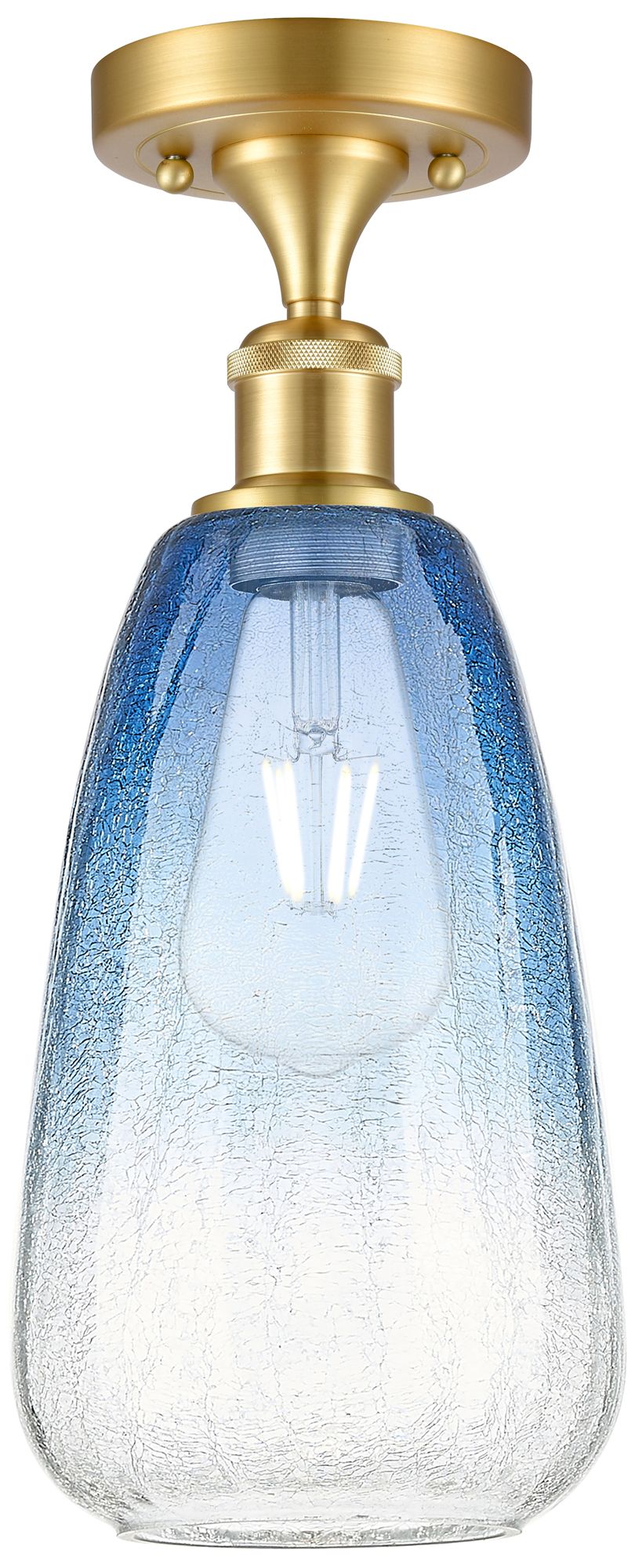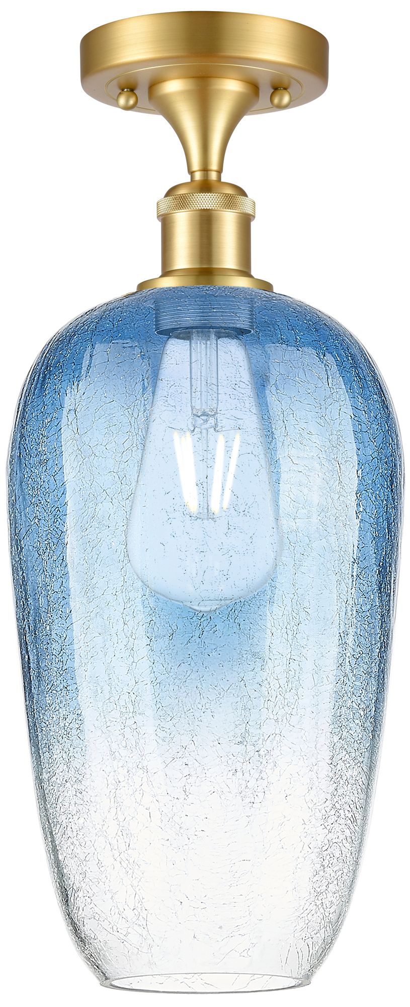Ballston Brookhaven Flute 7"W Gold Semi.Flush Mount w/ Sapphire Shade